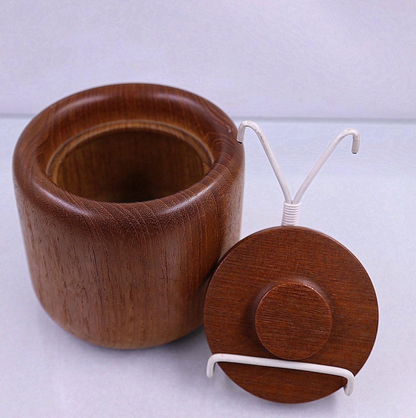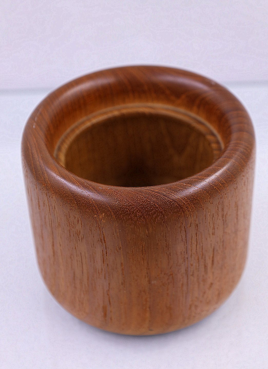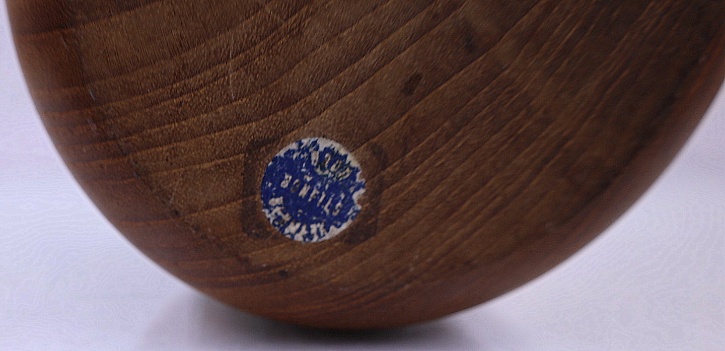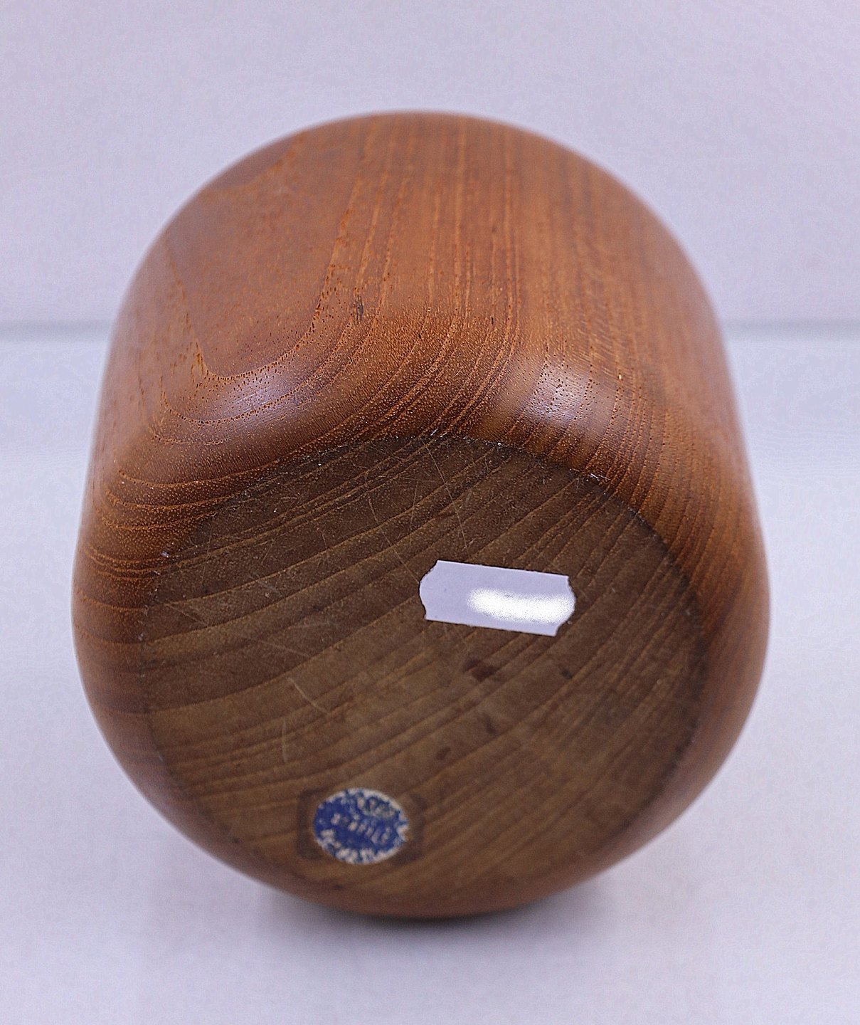 Lågkrukke i teaktræ. Der er mærke i bunden hvor der står Bonfils.