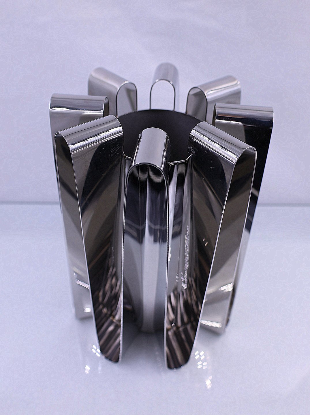 Georg Jensen. Stor vase i Frequency kollektionen udført i glaspoleret rustfrit stål, der er valset i 8 smukt bølgende bånd. Design år 2018, lanceret 2019. Vasen er uden ridser og andre brugsspor