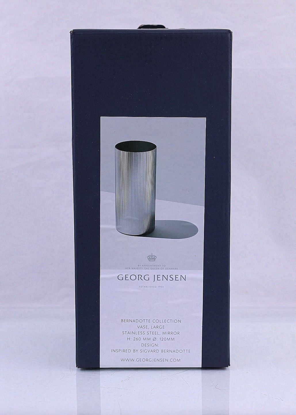 Georg Jensen. Vase fra Bernadotte Collection. Bernadotte-vasen er udført i rustfrit stål og håndpoleret for at sikre et perfekt, rent look. Vasen blev designet 2018 og lanceret 2019, str. stor.