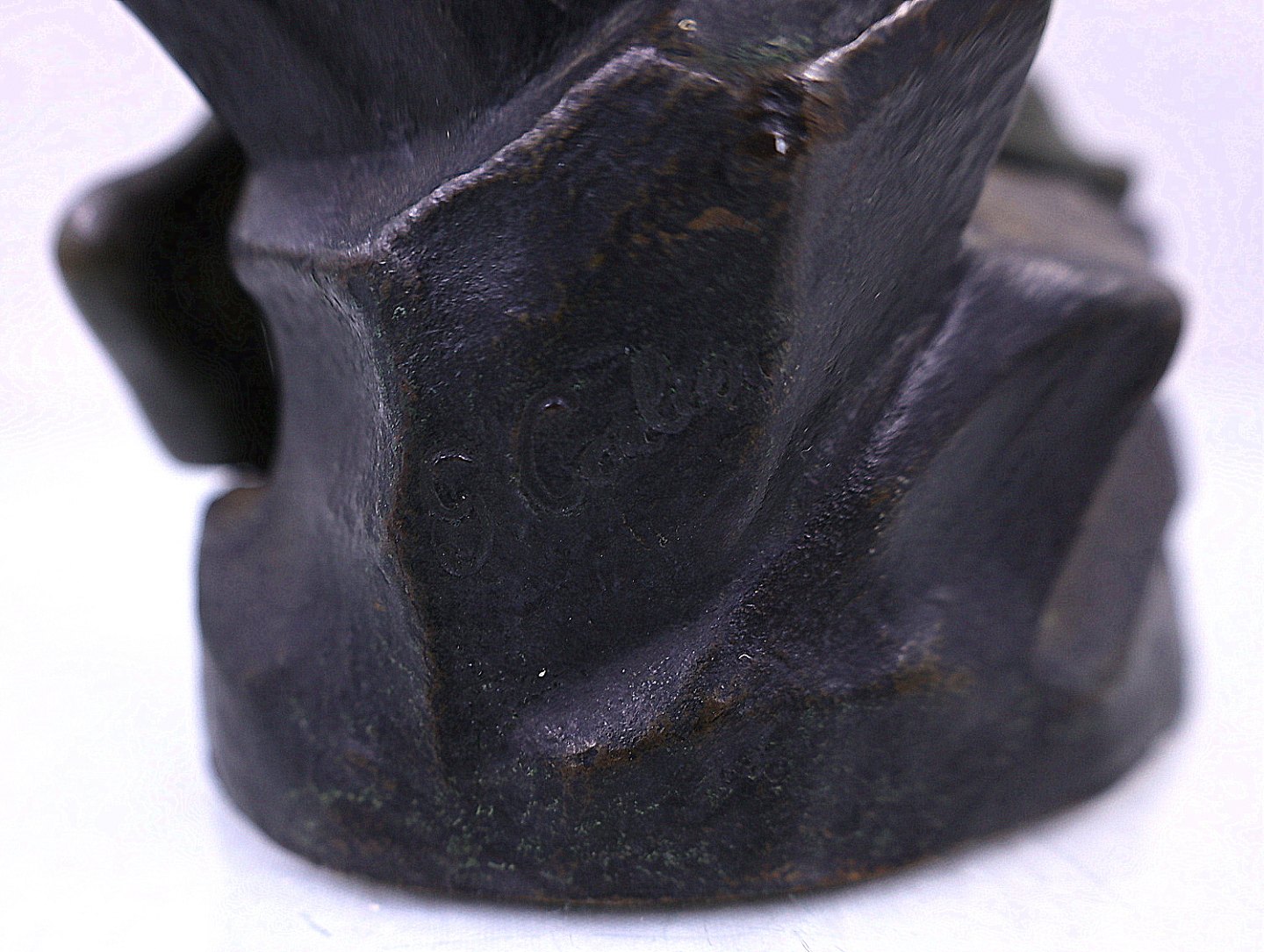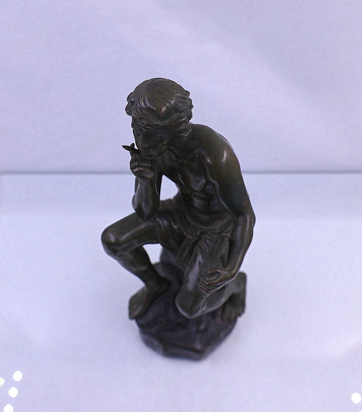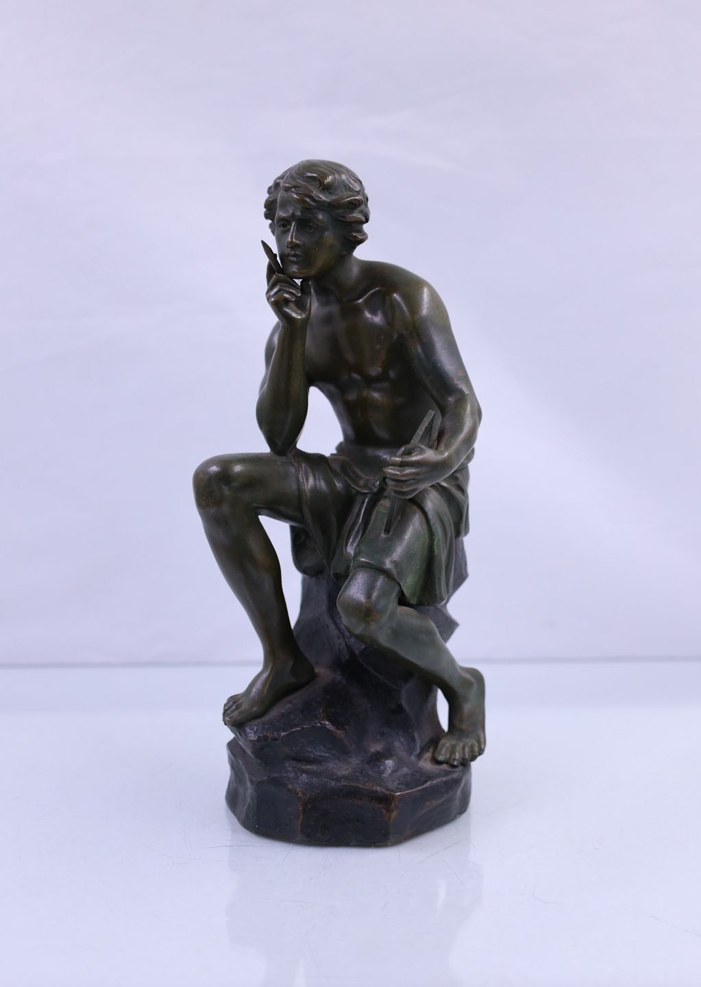 S. Carlier. Bronze mand, der sidder med pen og blok. Figuren er udført efter "Grubleren" af Auguste Rodin.