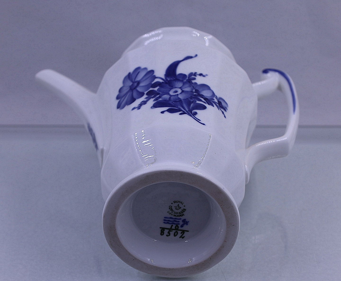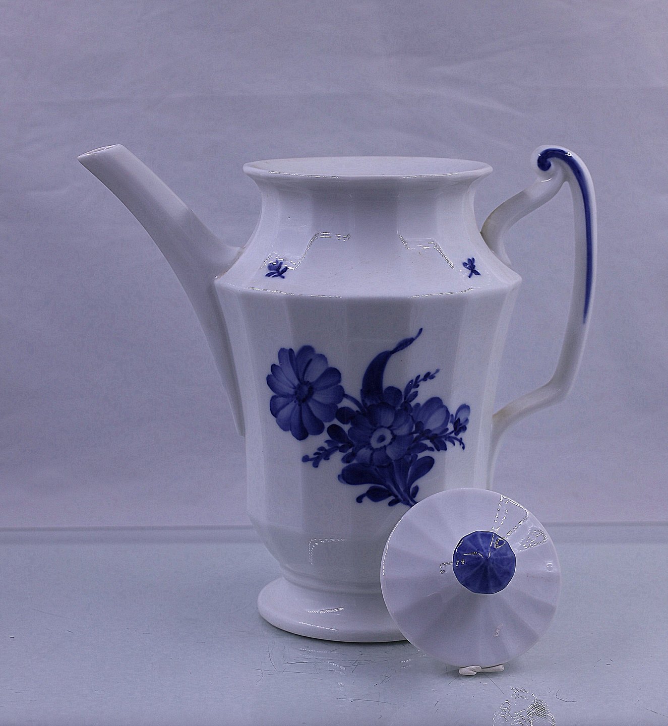 Royal Copenhagen, Blå Blomst, kantede kaffekande, 10/8502. Blå blomst hører til rækken af hvid og blå porcelæn Royal Copenhagen har lavet