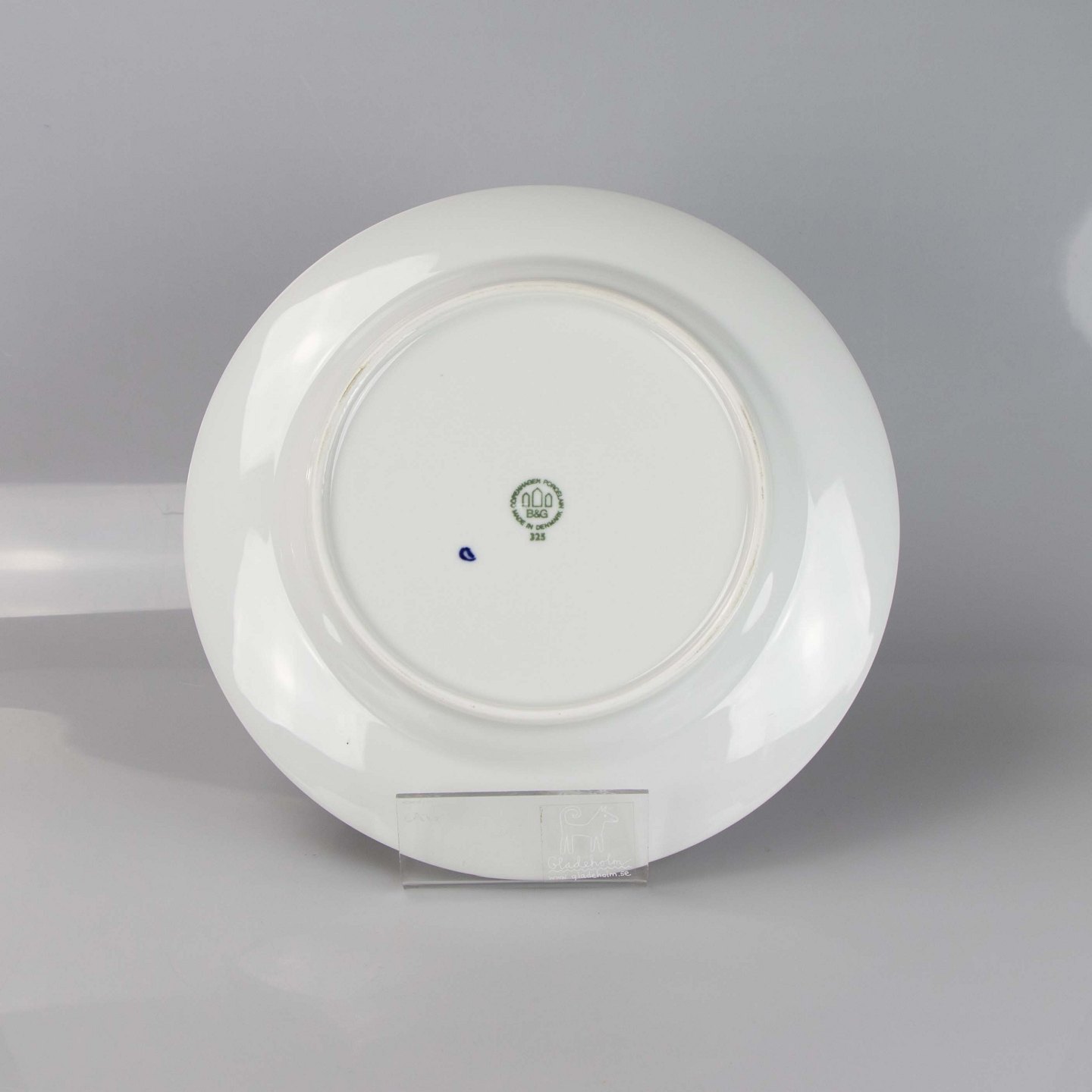 Flad tallerken i hvidt og gradueret blå porcelæn med motiv af julerose.
