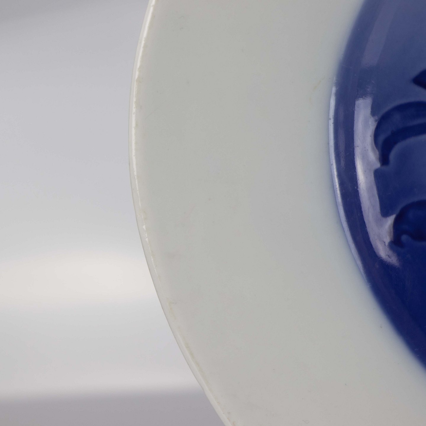 Serveringsfad i hvidt og gradueret blå porcelæn med motiv af julerose.