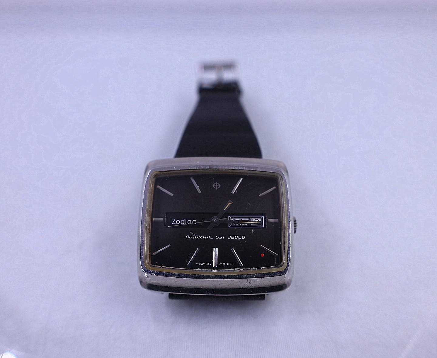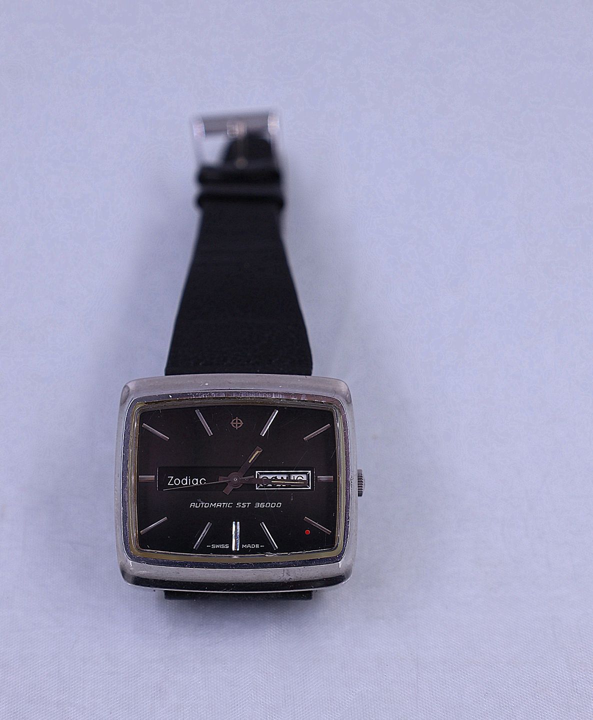 Zodiac, herre armbåndsur. Nr., på uret, 882 978. På forsiden står Zodiac Automatic SST 36000. Hirsch Nappacalf rem. Uret er Swiss made og har Automatic Antignetic. Uret er Water- & Shockresistent. Der er graveret et nr. 2808634 og uret virker.
