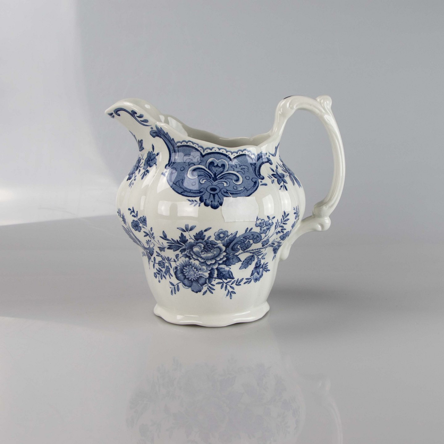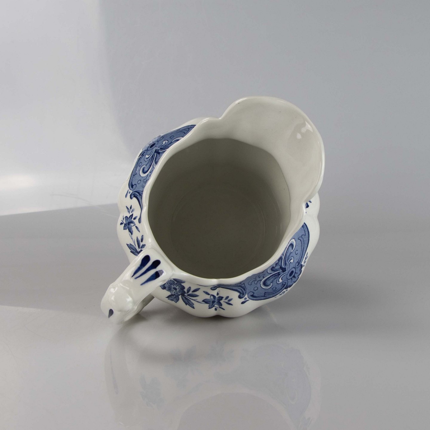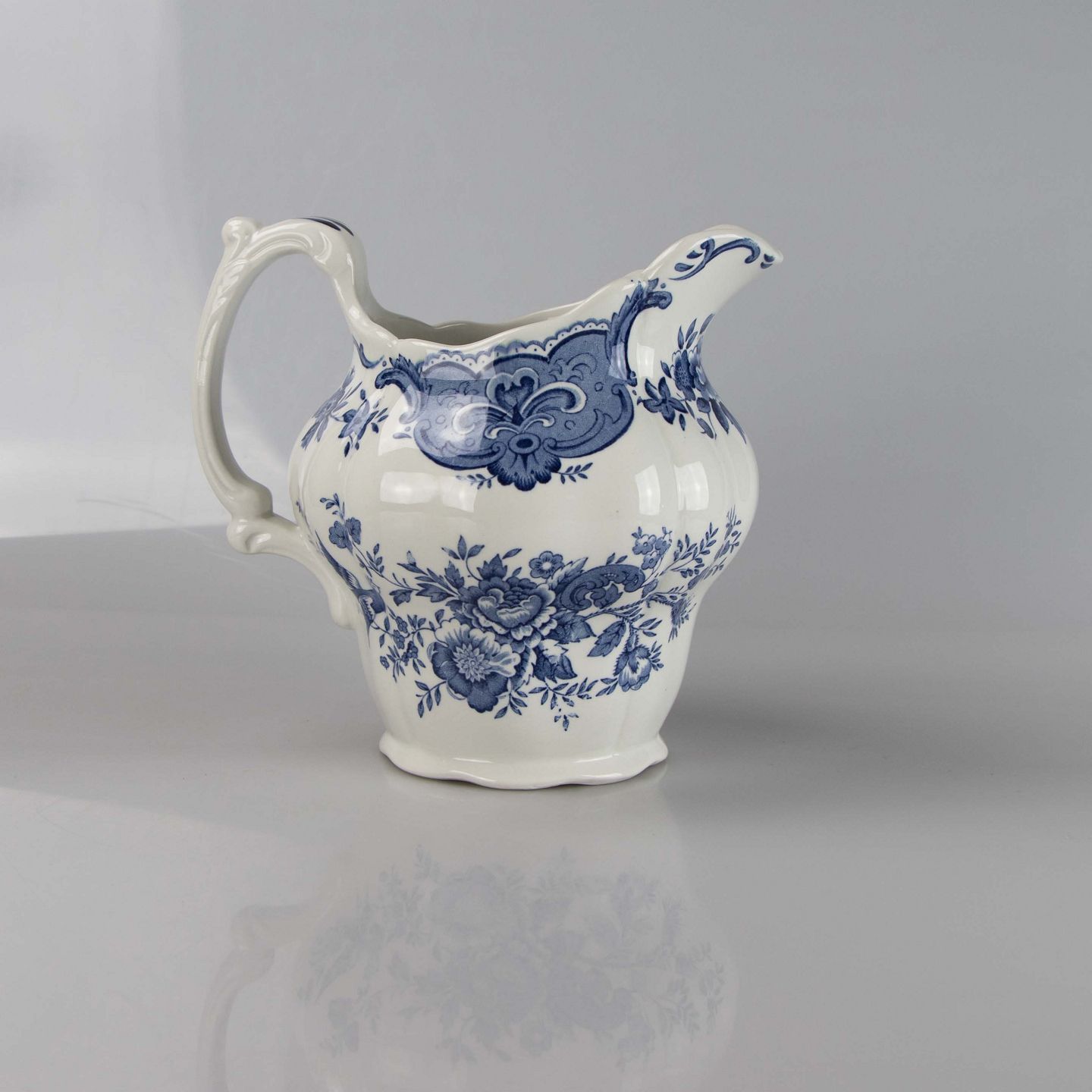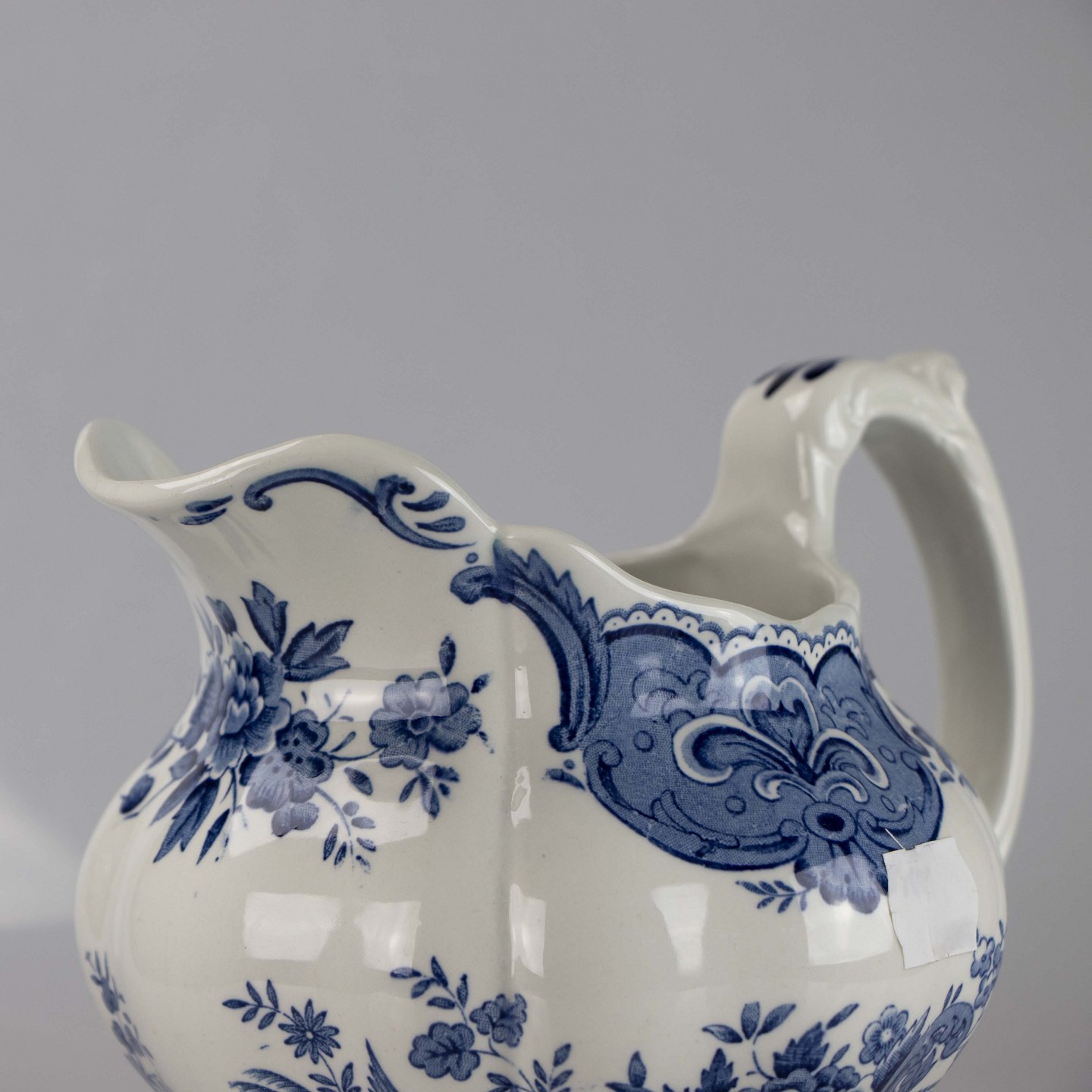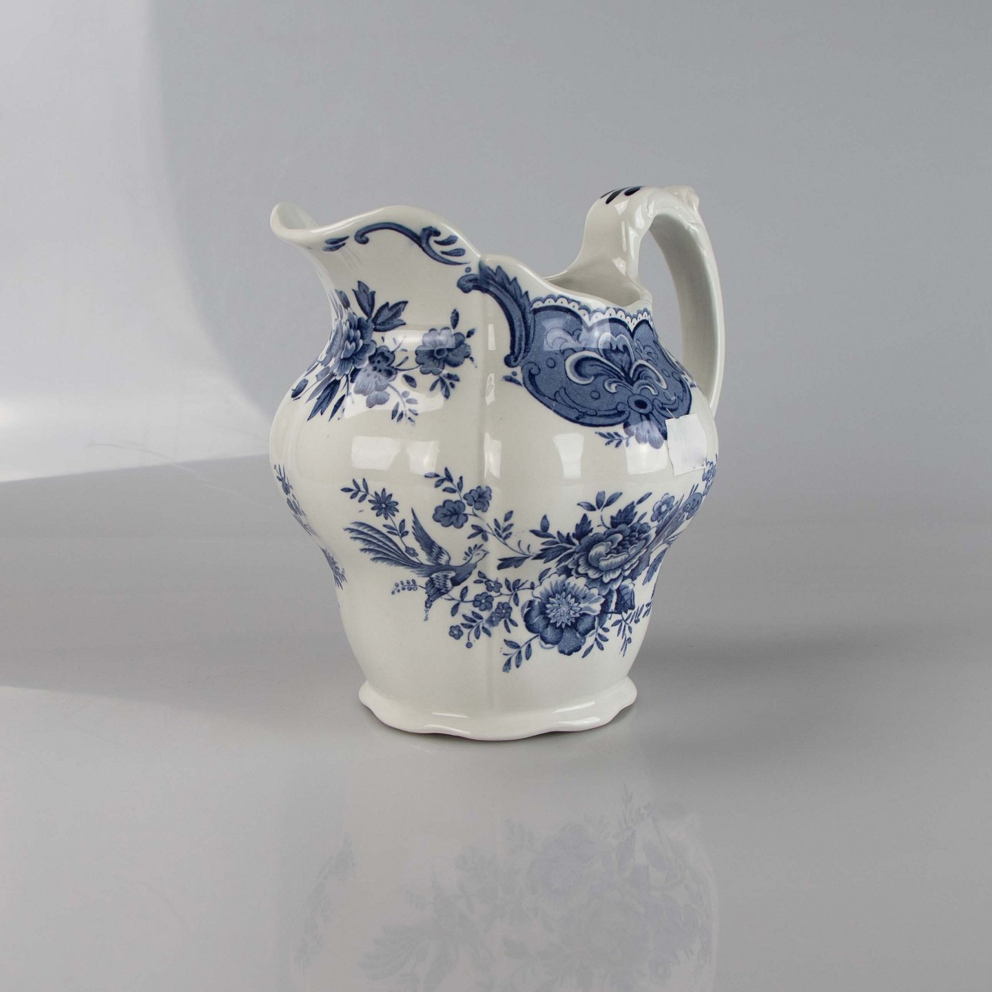 Kande i hvid fajance med blåmalet motiv af blomster. og fugle
