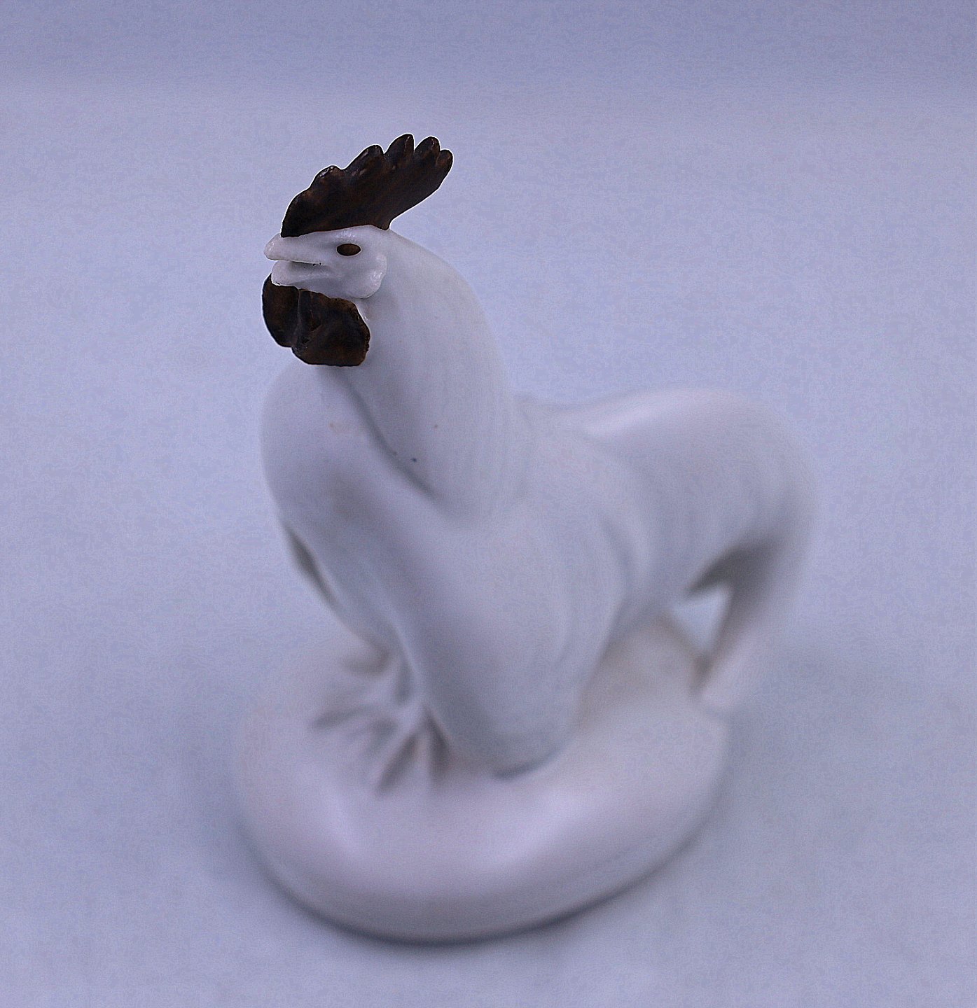 Royal Copenhagen. Hane, nr. 1128. Hanen er hvidglaseret med brun kam og pludder. Hanen er 1. sortering og uden brugsspor