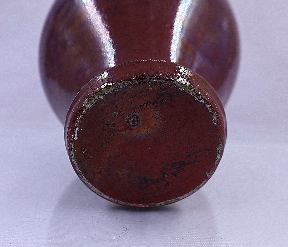Kähler vase. Vasen er med krakele glasur og farven er okseblodsrød. Vasen er i facon som amfibervaser.