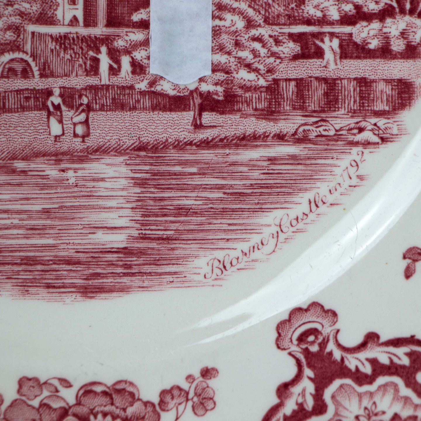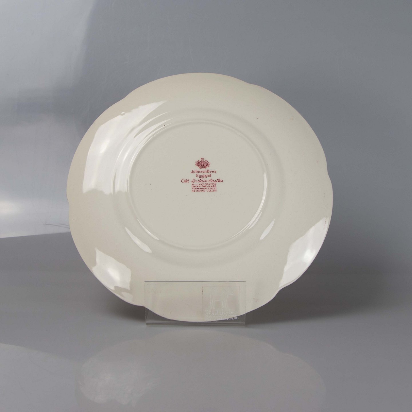 Tallerken i lys fajance med røddekoreret slotsmotiv.
