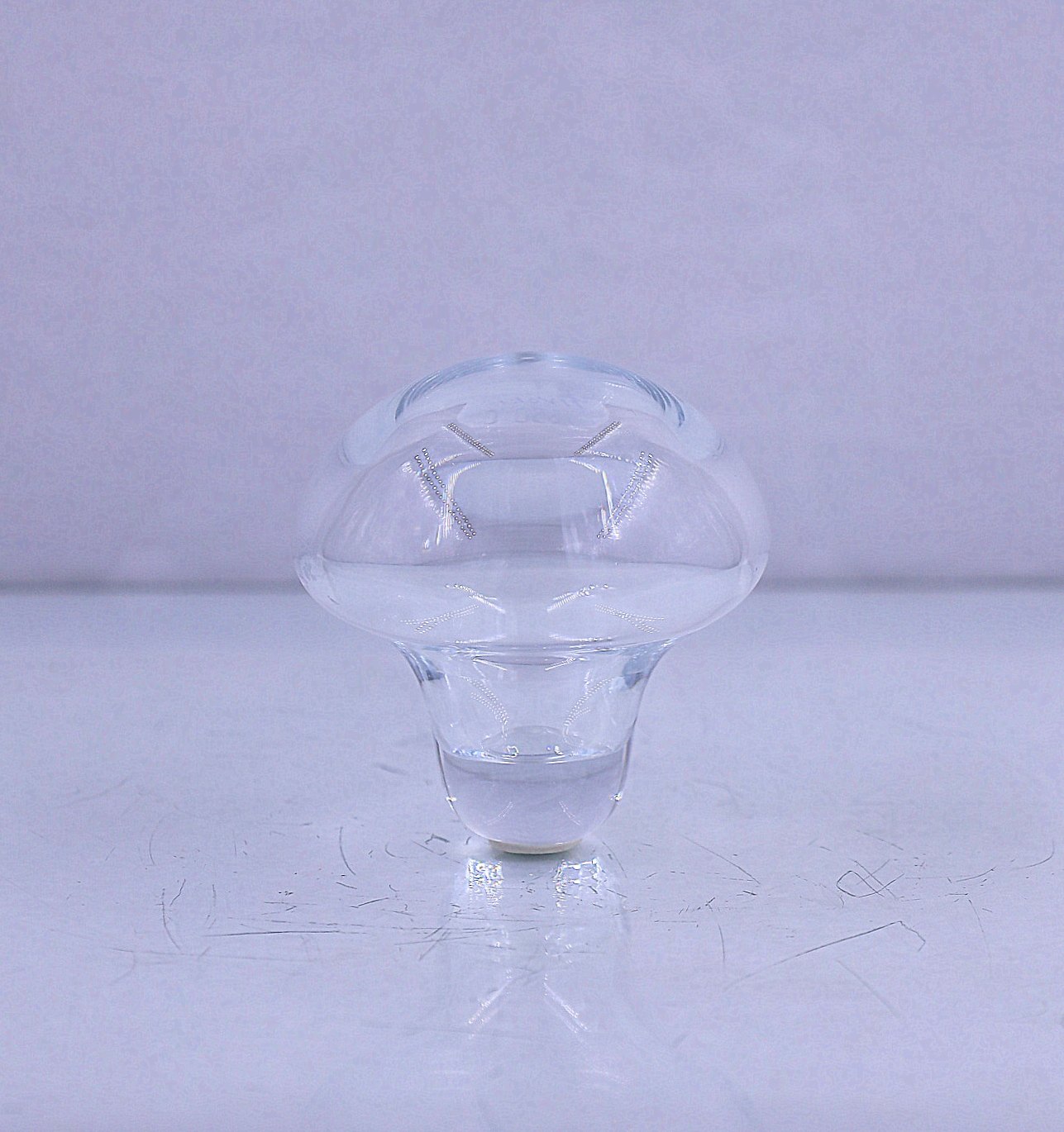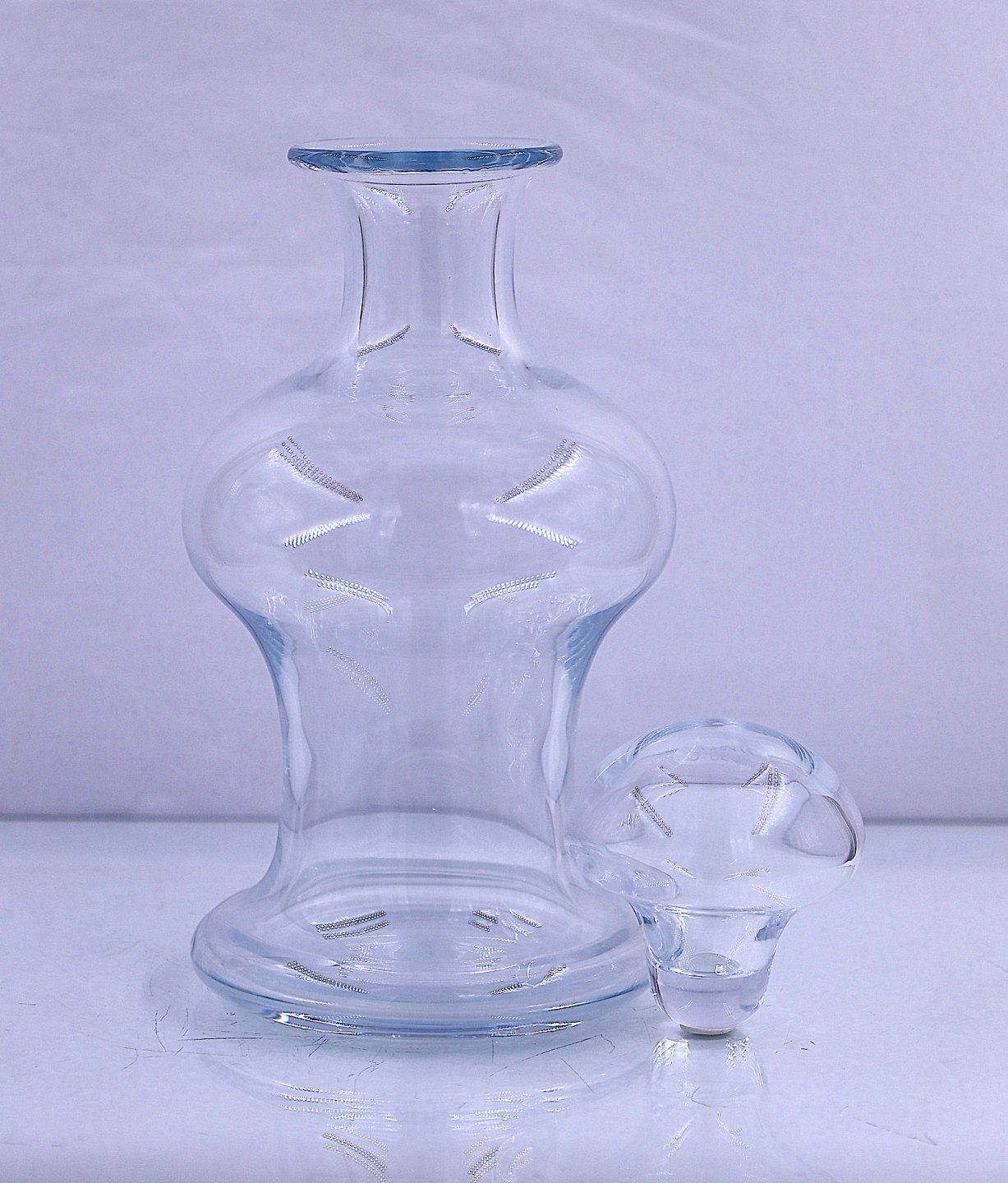 Holmegaard Glasværk. Tivolikaraffel. Glas med glat kumme og stor massiv knop. Der er prop på karaflen