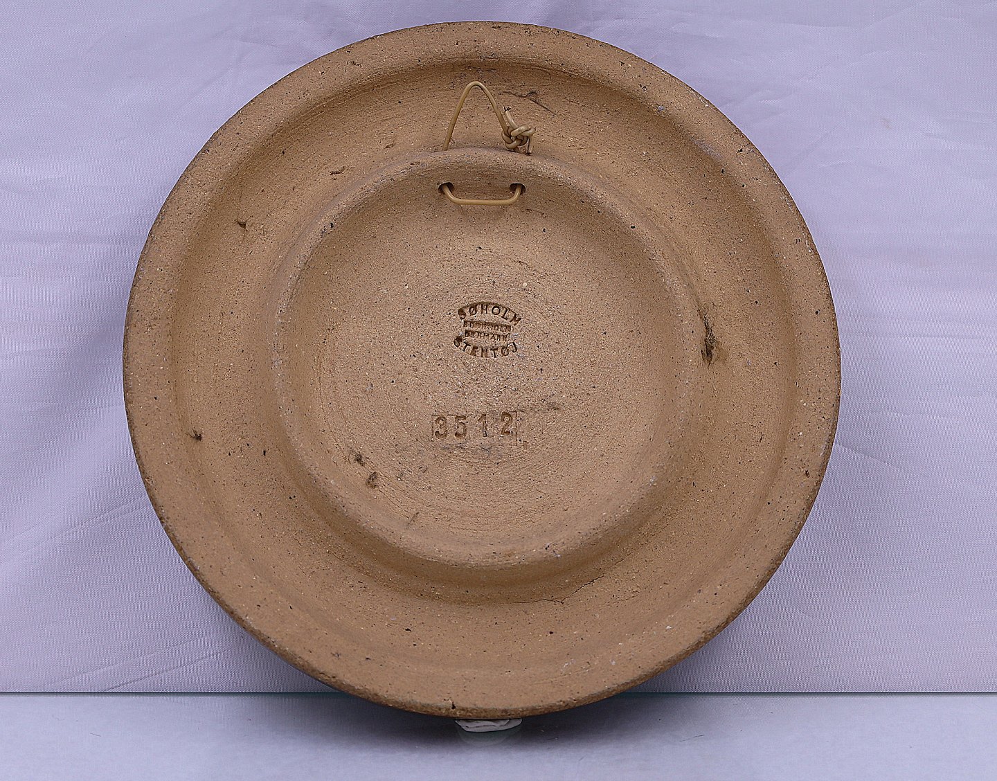 Søholm Keramik. Rundt relief med elefant, der går i græs og blade, relieffet er glaseret brunligt.