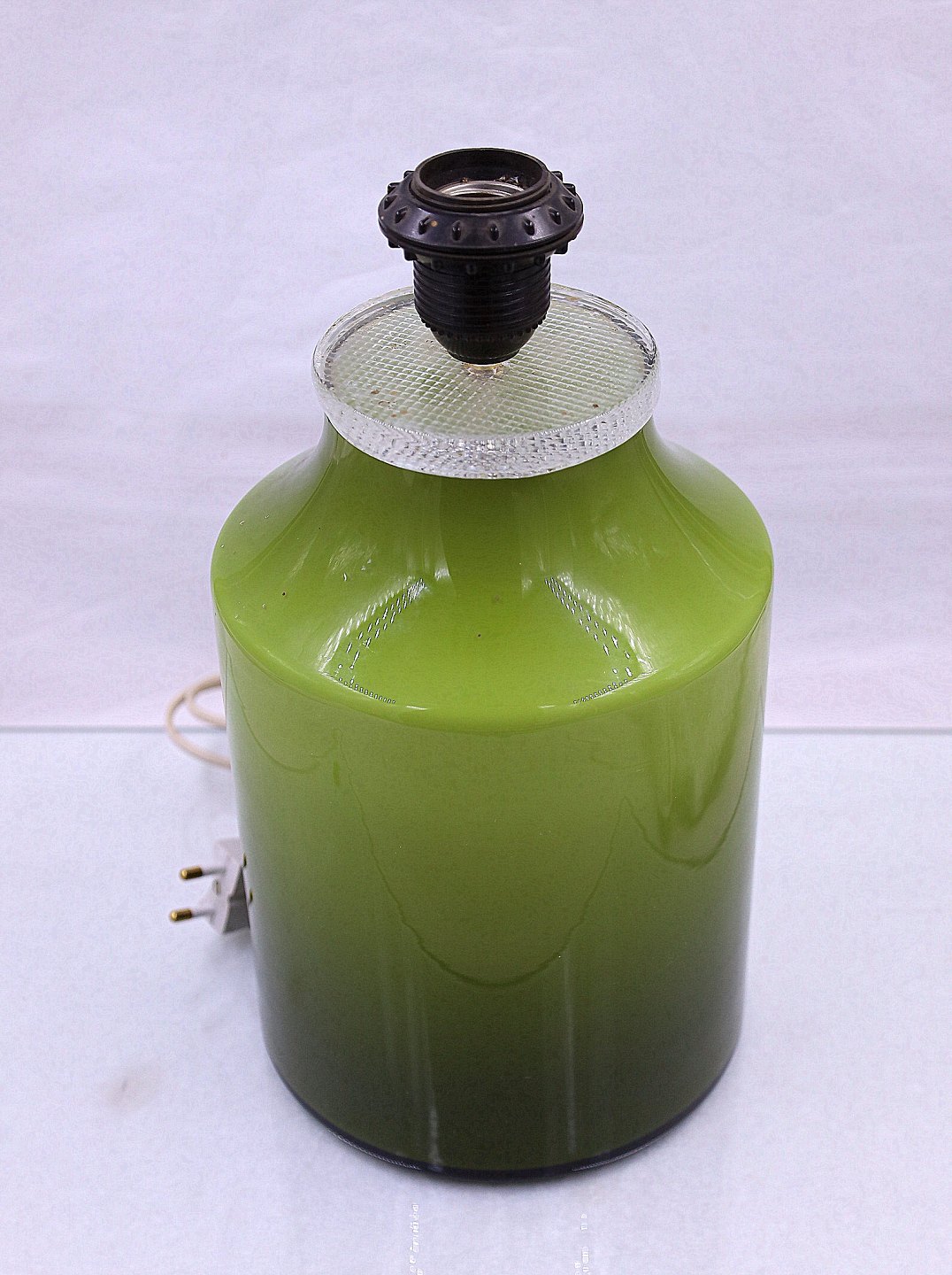 Bordlampe. Grøn, glas bordlampe. lampen har klar glas krave