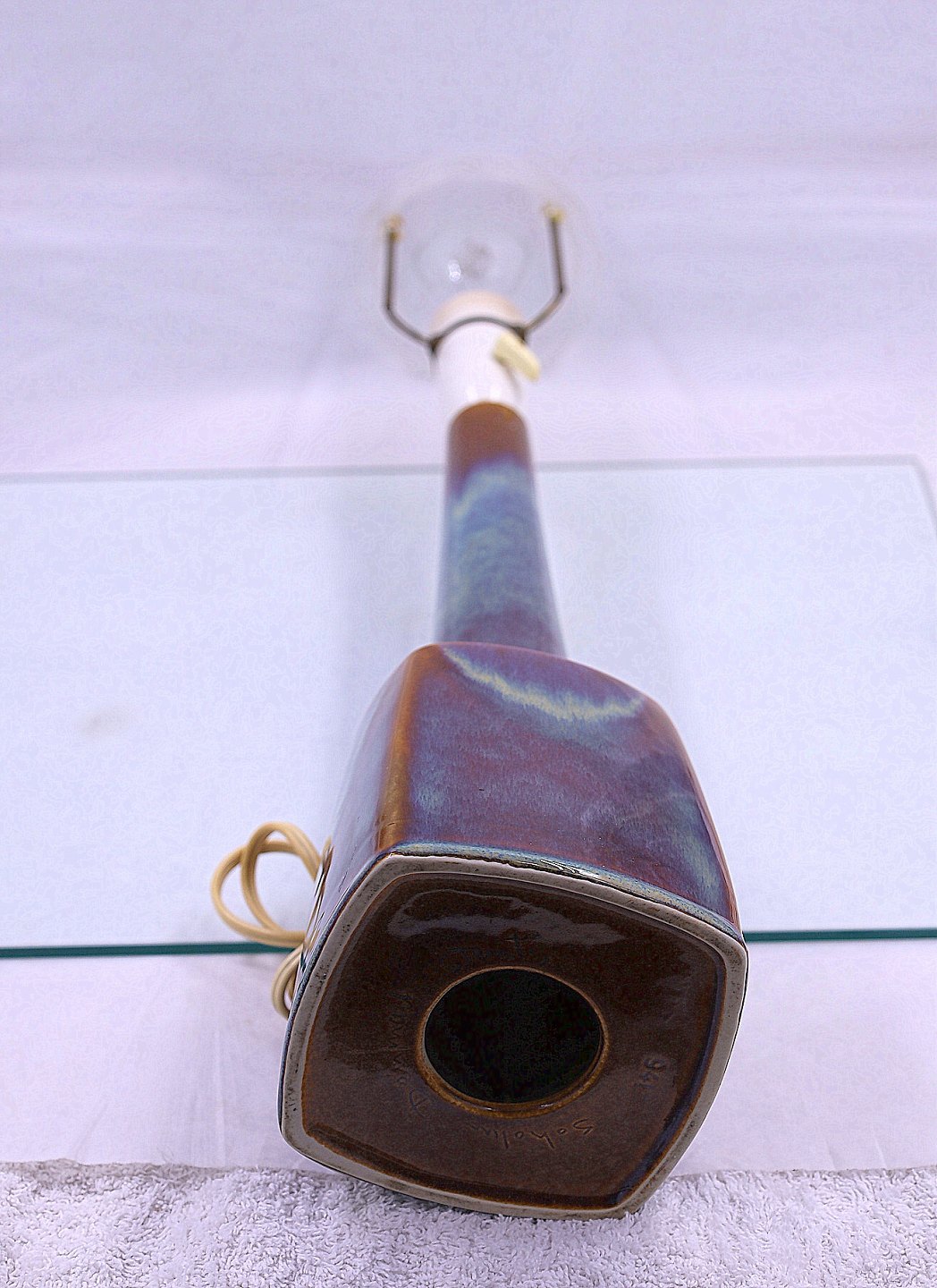 Søholm Keramik. Burgundia, nr. 941. Lampen changerer i blålige farver.