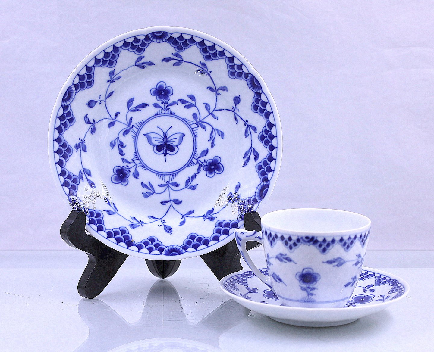 BG., porcelæn, kaffestel, stel, hvid, blå, sidetallerken uden guld, musselmalet