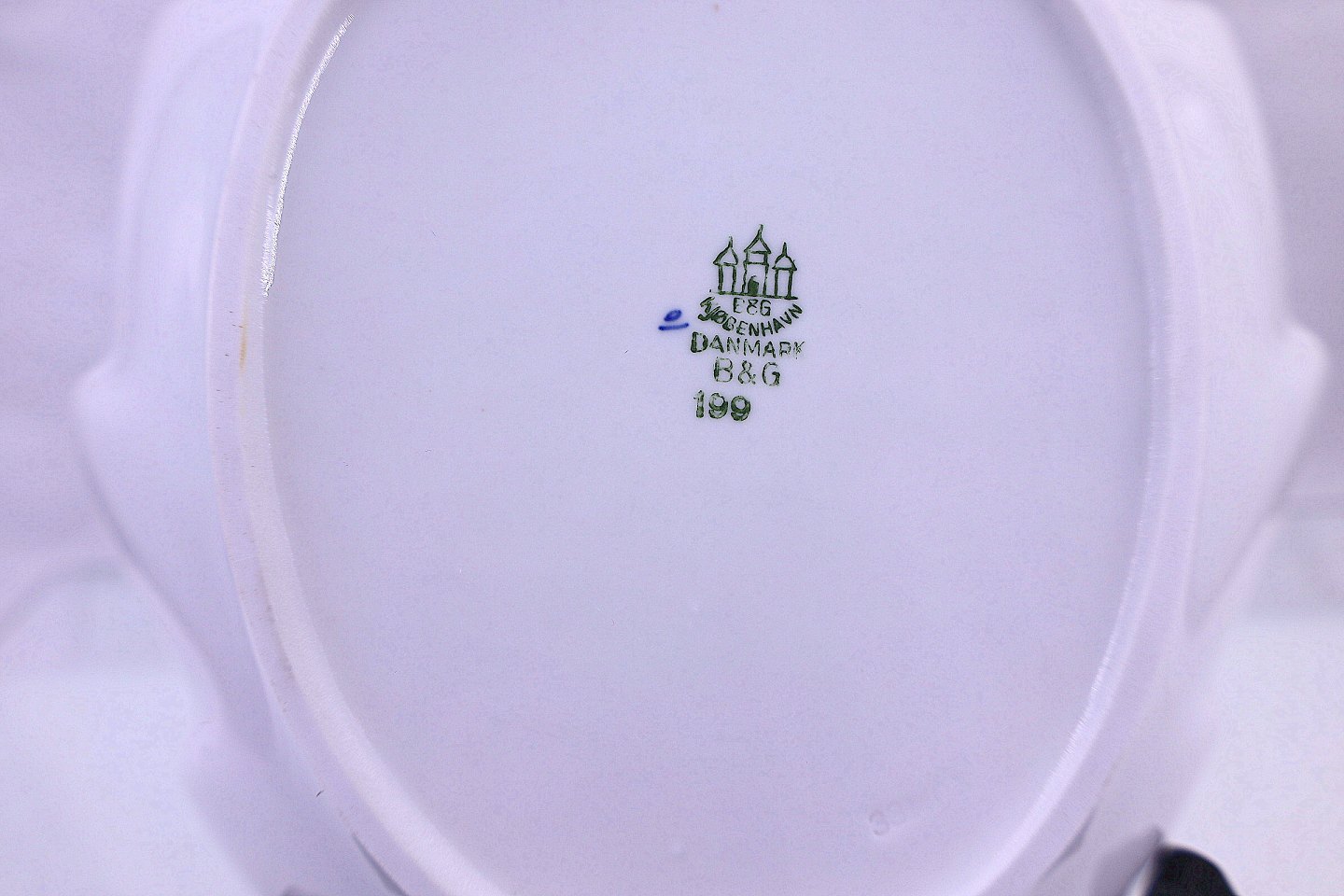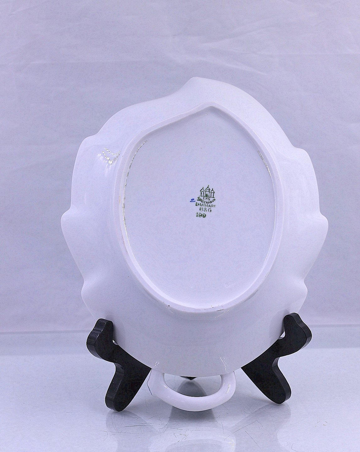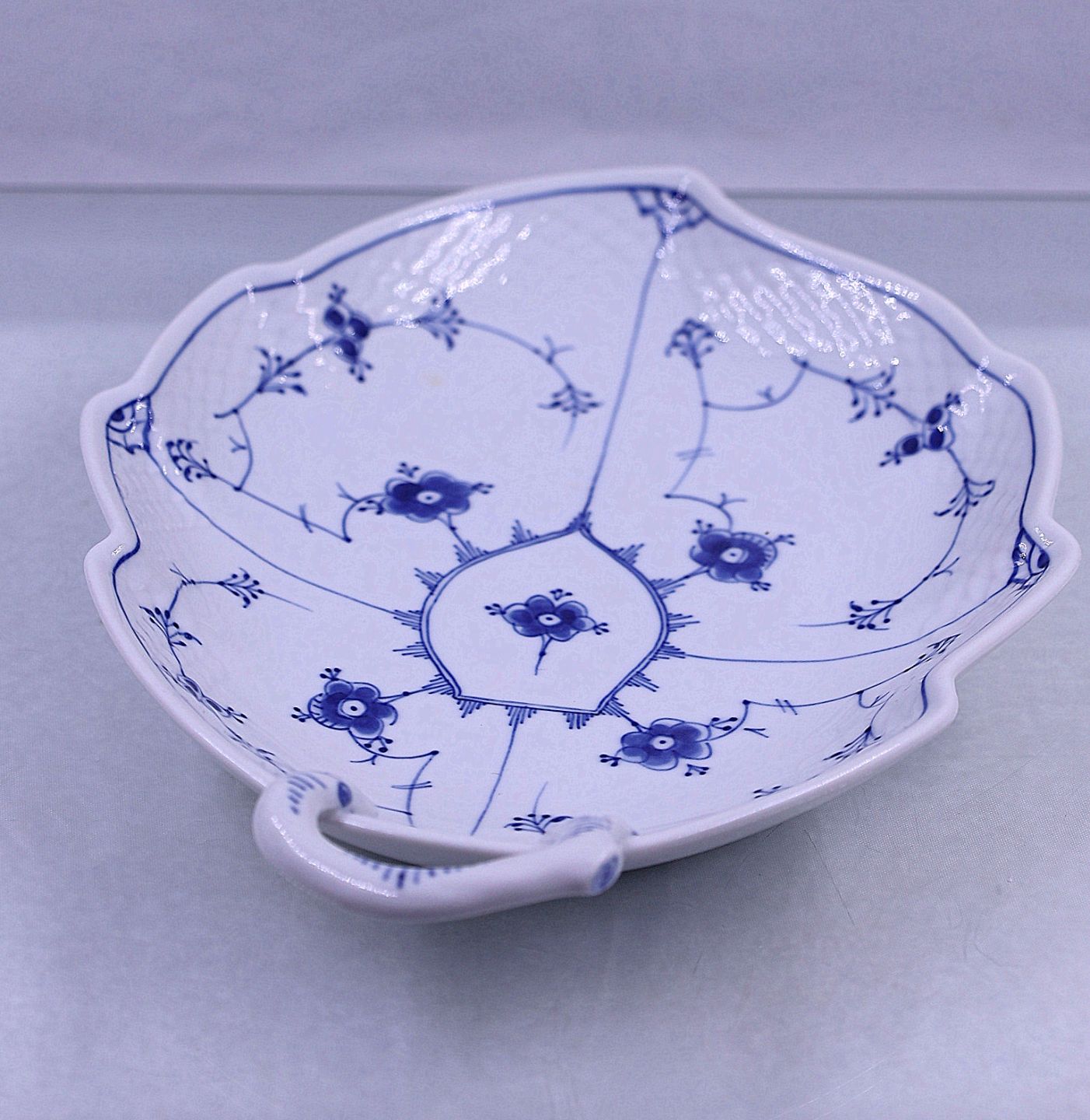 Bing og Grøndahl blåmalet bladformet fad, nr. 199, Musselmalet fad med skelkant.