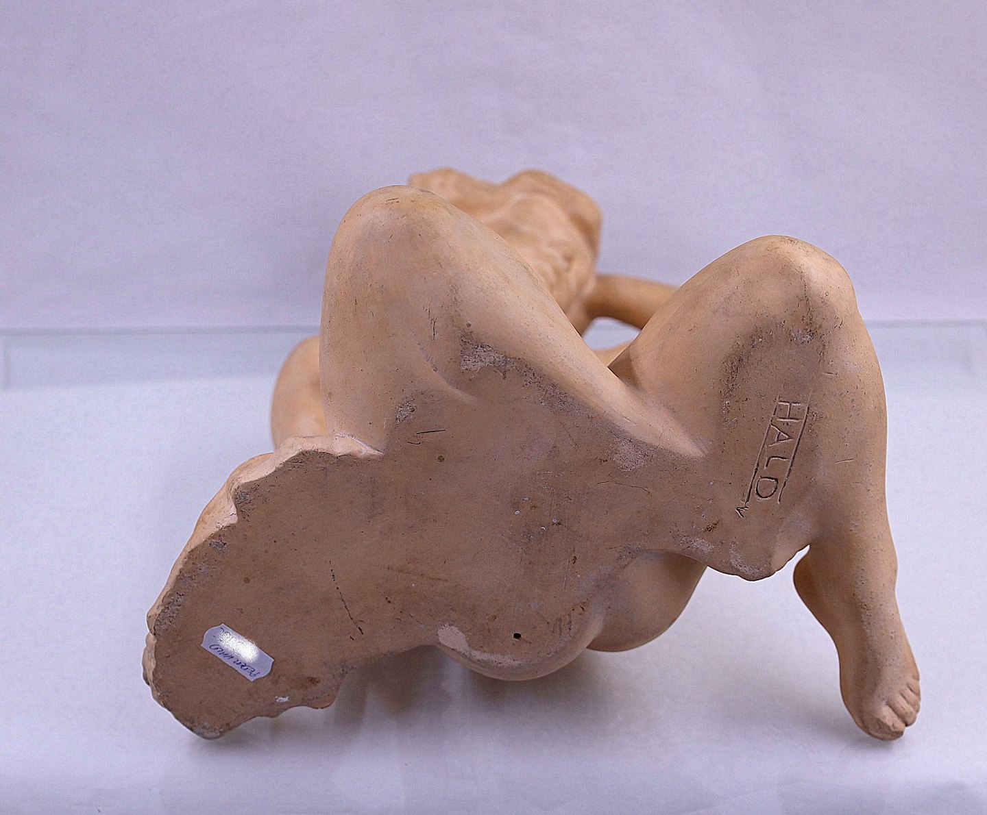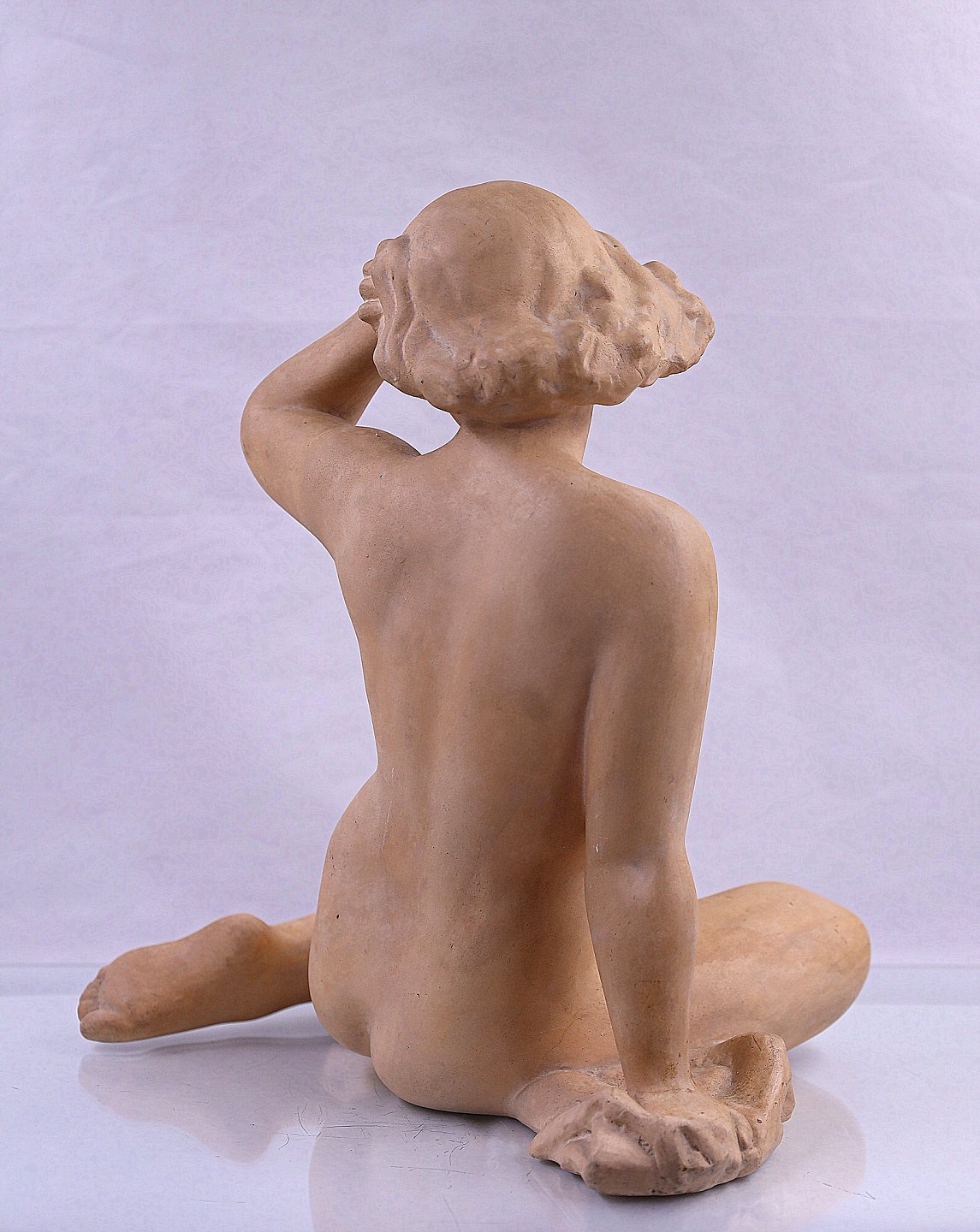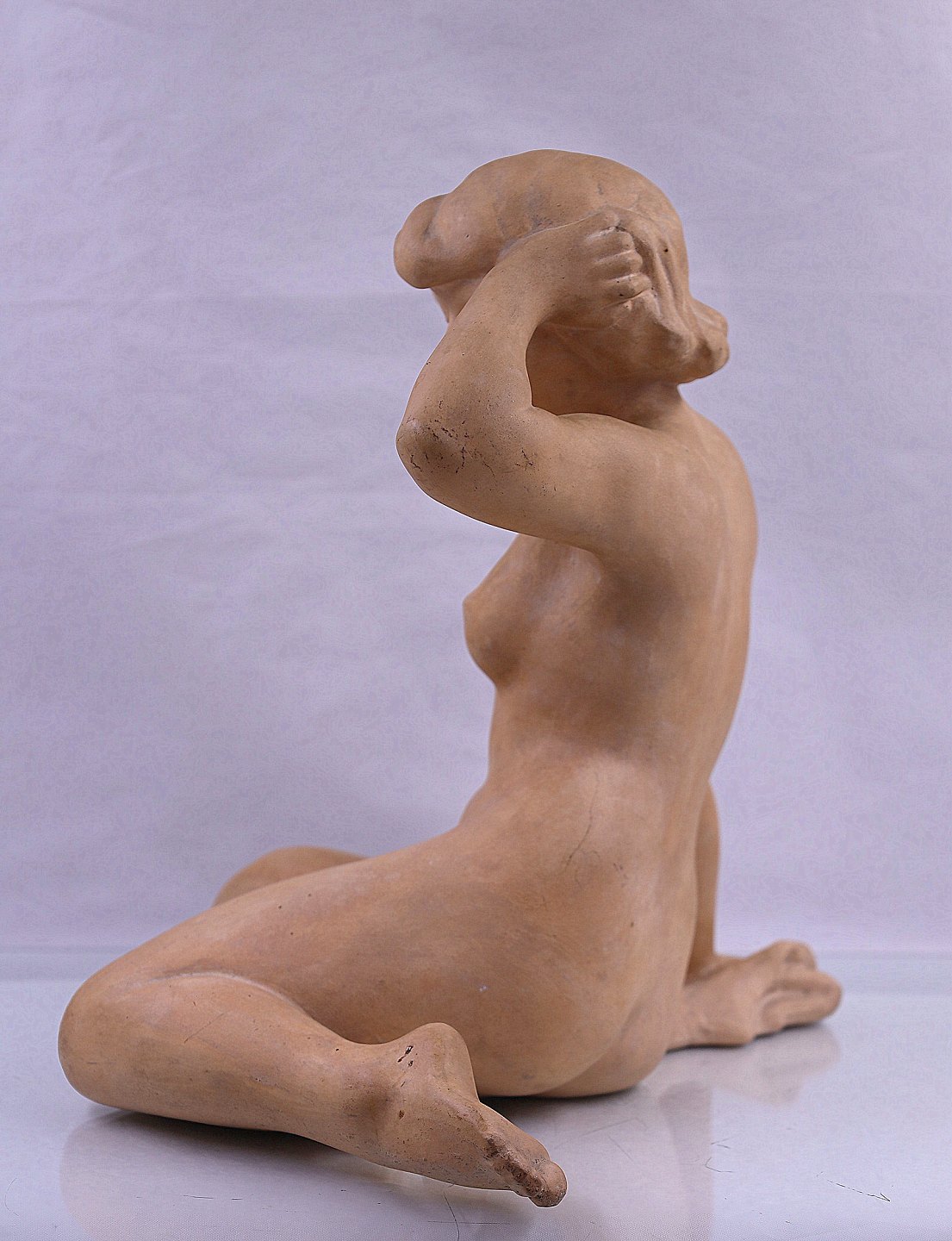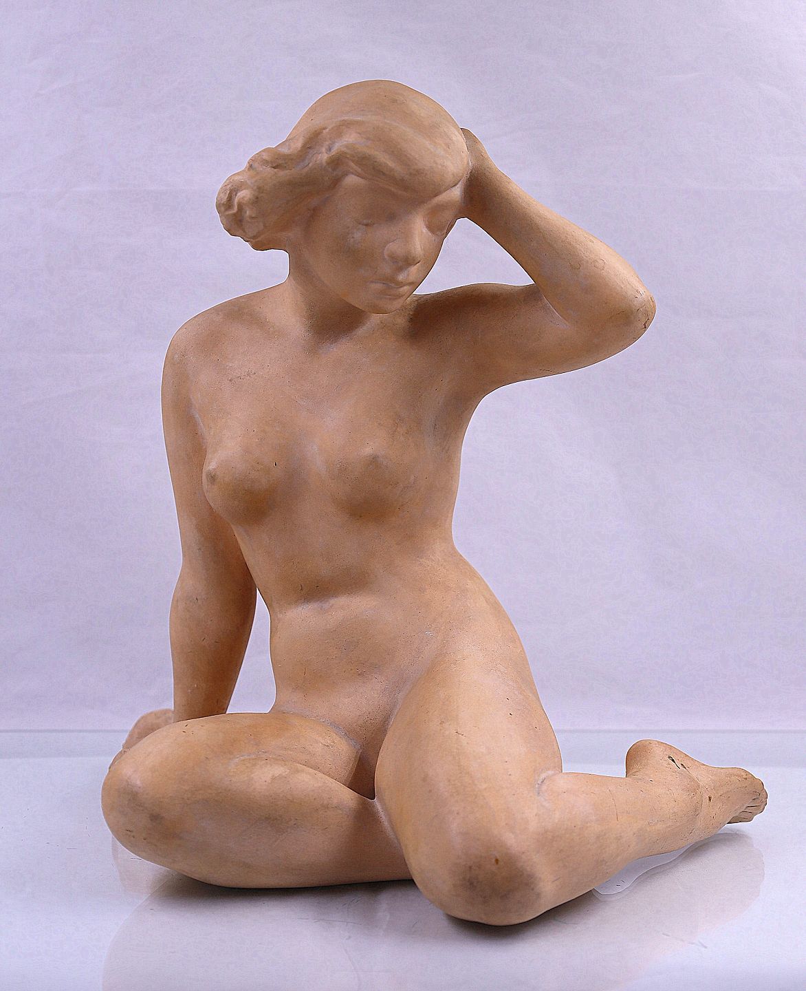 Peder Hald (1892-1987). Siddende Nøgen Kvinde. Figuren er af uglaseret terrakotta.