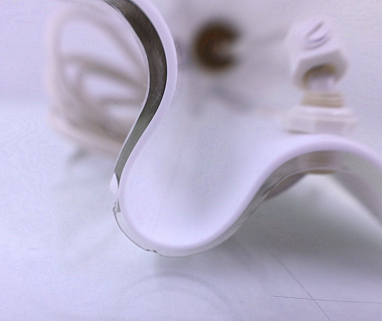 Le Klint. Bordlampe nr. 304. Lampefoden er af hvidt opal glas, glasset er foldet.