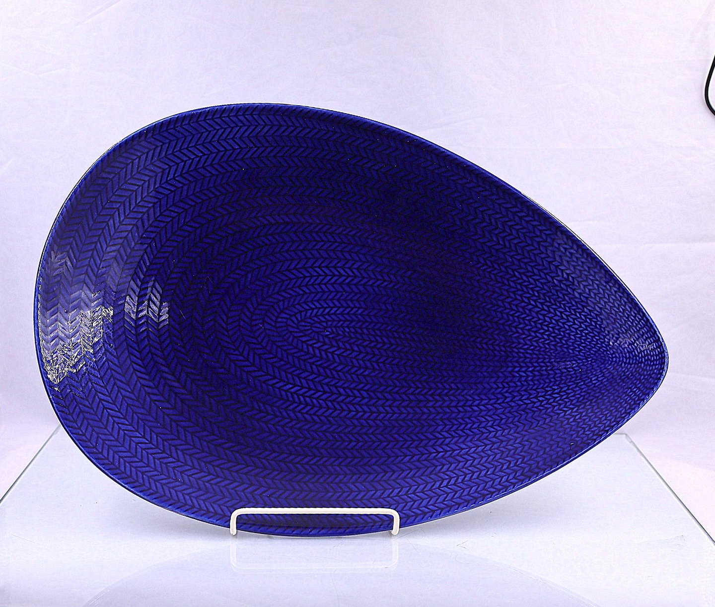 Rörstrand Blå Eld, ovalt serveringsfad. Blå Eld har en fantastisk retro form med elegant design og smuk koboltblå glasur i sildebensmønster.