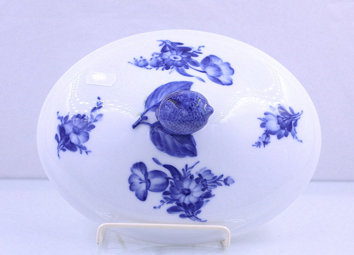 Royal Copenhagen. Blå Blomst, flettet. Ovalt lågfad Nr. 10/8054. Fad og låg har samme nr. Blå blomst hører til rækken af hvid og blå porcelæn Royal Copenhagen har lavet