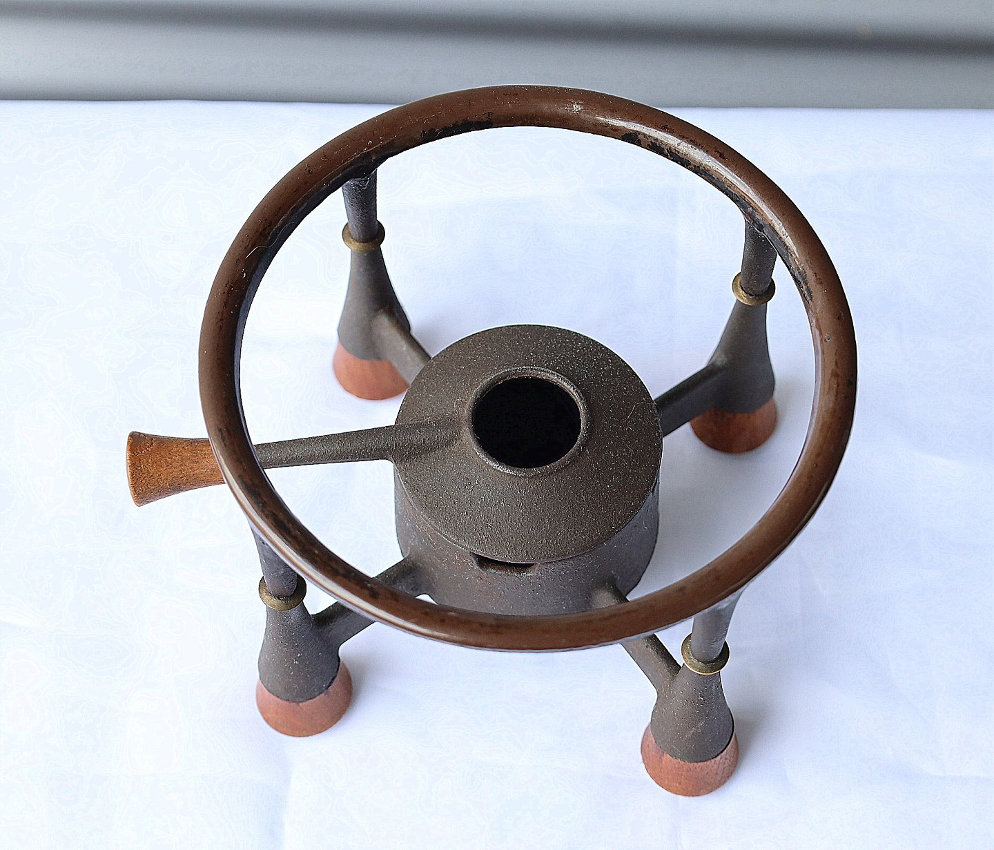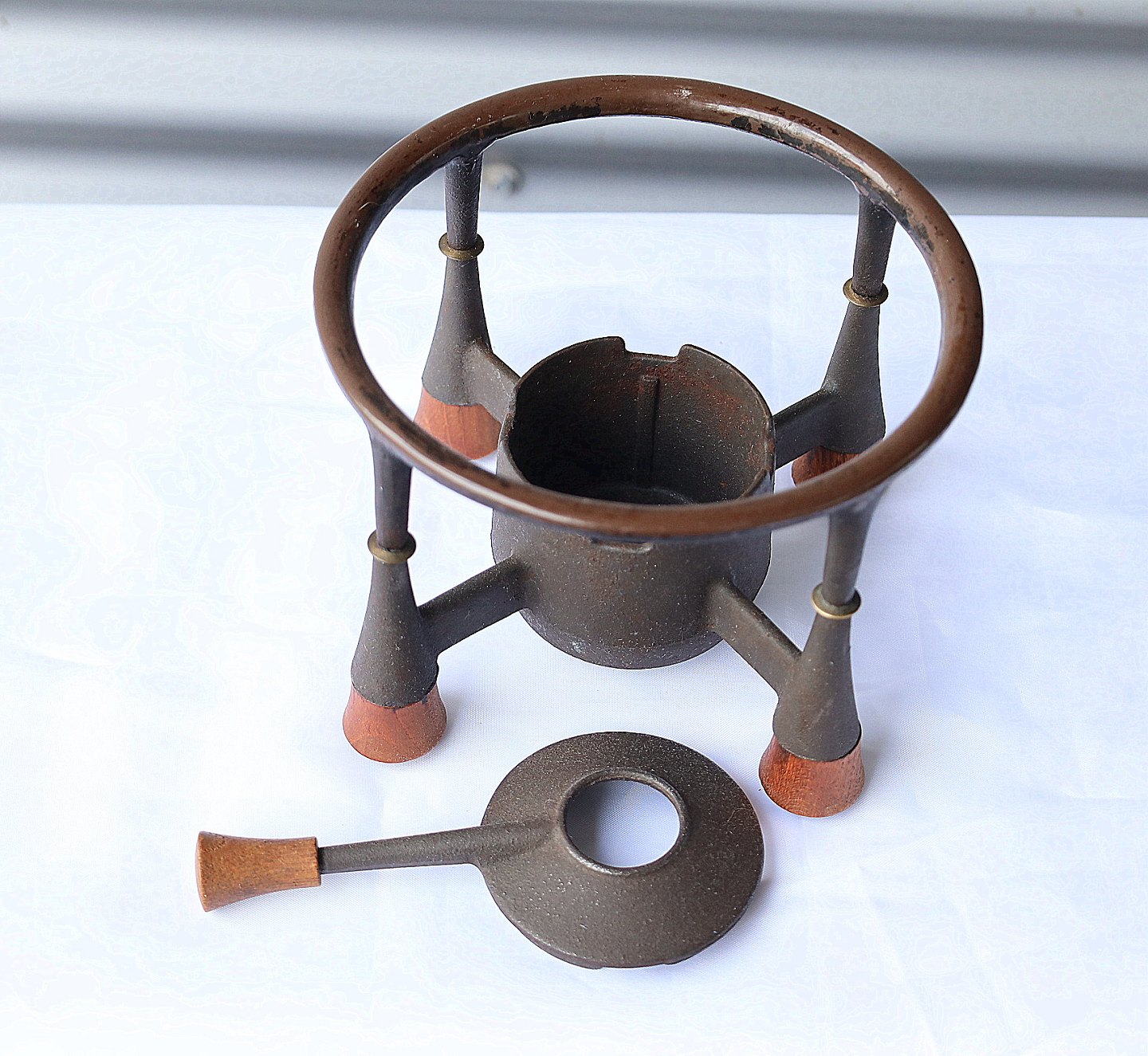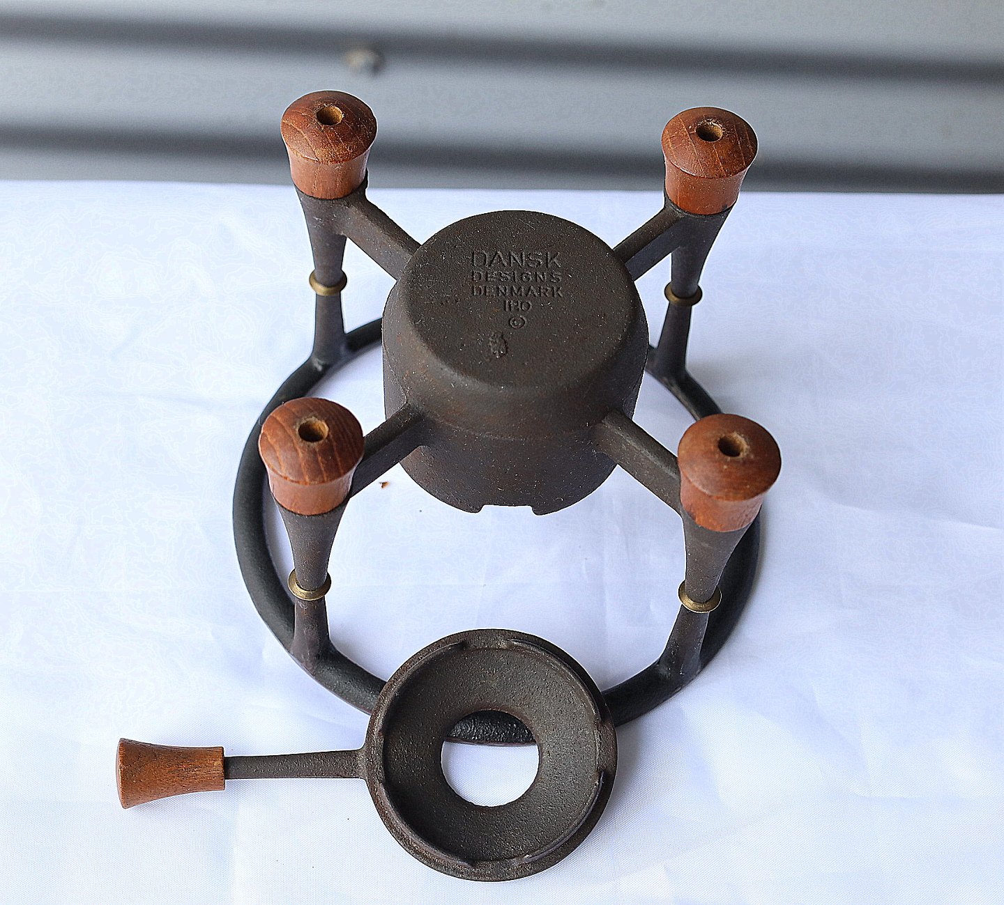 IHQ = Jens Harald Quistgaard. Gul fonduegryde med brænder. Gryde "France". Gryden er gul emaljeret jern og brænderen er støbejern. Fondue sættet bliver kaldet " Kobenstyle". Fondue sættet kommer med gryde med teaktræ håndtag, og brænder med låg med teaktræ håndtag og fødder af teaktræ.