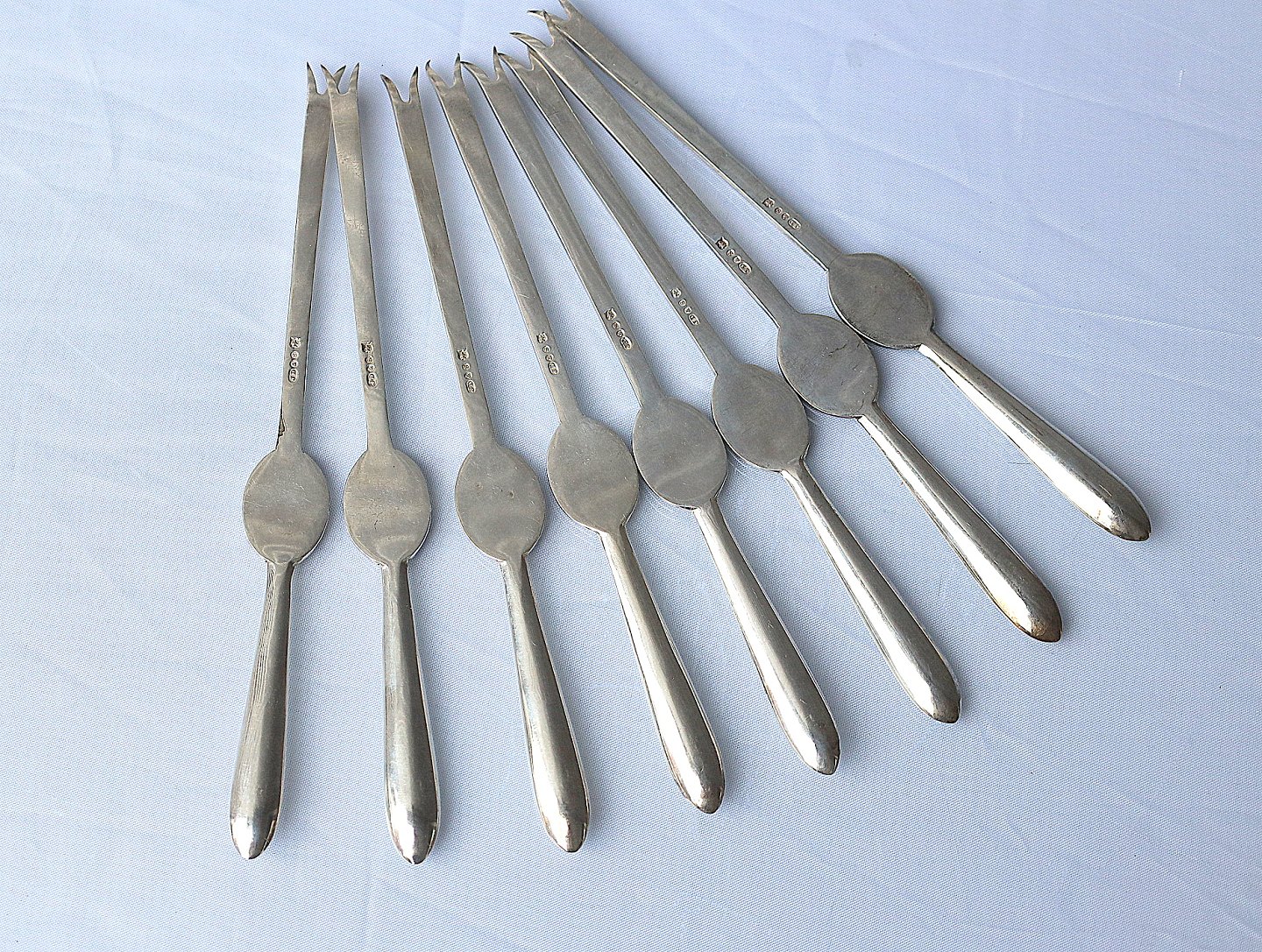 Et sæt med 8 styk hummergafler i engelsk pletsølv