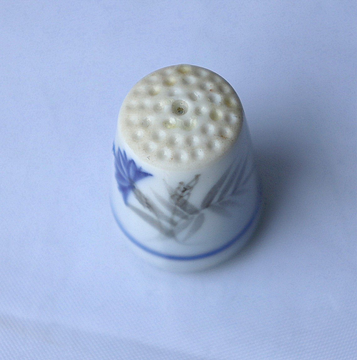 Bing & Grøndahl. Fingerbøl nr. 4802, dekoration "Demeter".. Fingerbøllet er forberedt til, der kan sættes et øsken i, så det kan blive til et vedhæng.