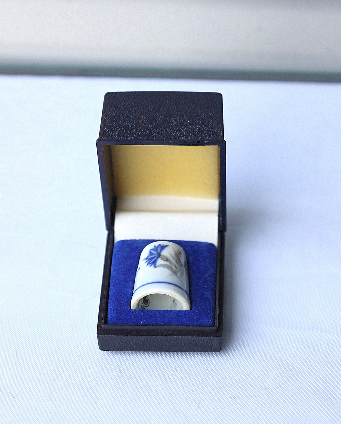 Fingerbøl, i original æske, 1. sortering og i fin stand.