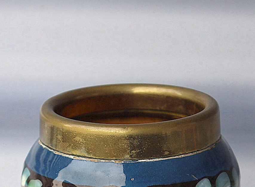 HAK - Herman A. Kähler. Vase, af keramik, dekoreret med kohornsglasur og monteret med messing krave.