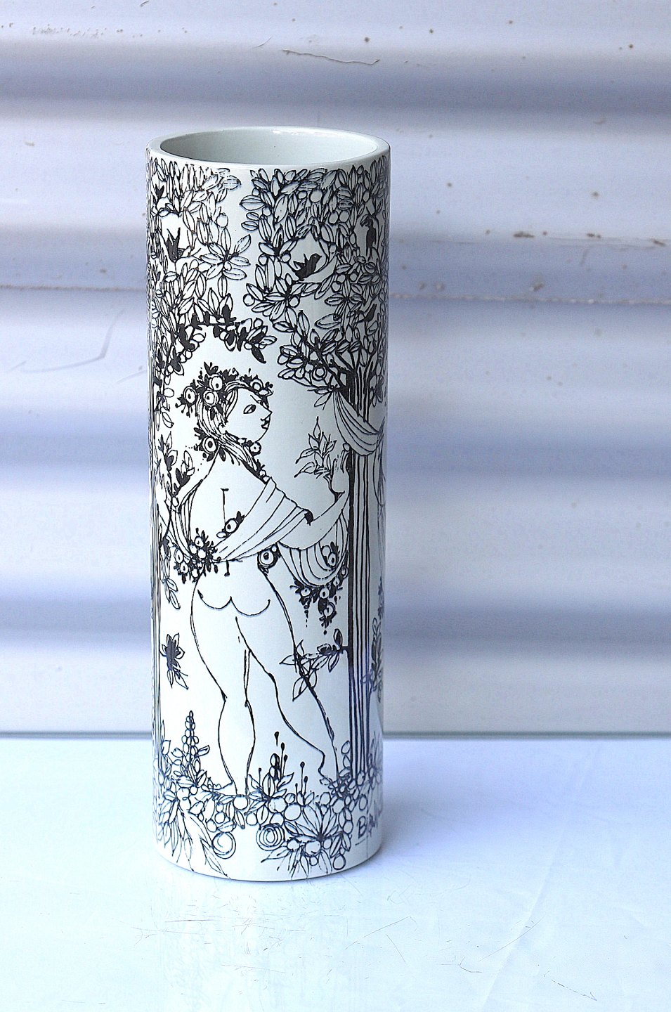 Bjørn Wiinblad. Vase, i keramik, nr. 3159-1317, "Tre Gratier. Vase med sort streg, som dekor.