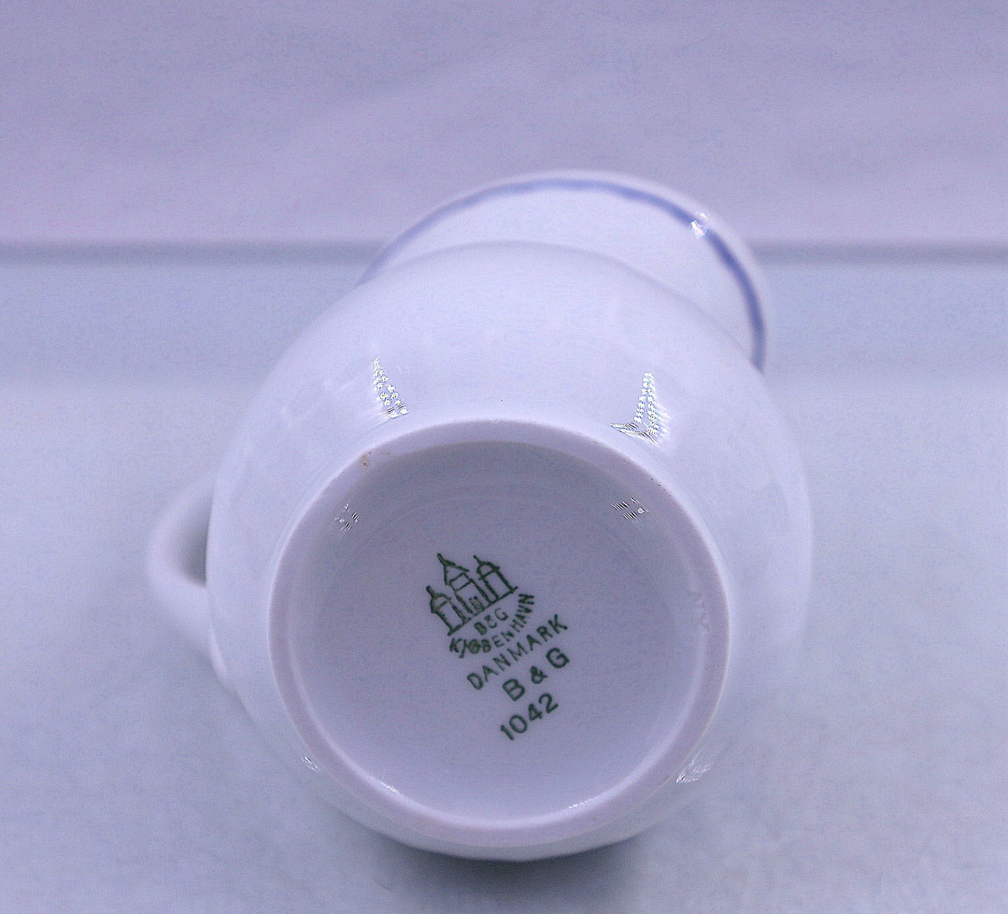 Bing & Grøndahl. Flødekande, nr. 1042. Flødekande af hotelporcelæn, dekoreret med stiliseret, blåt, egetræ.