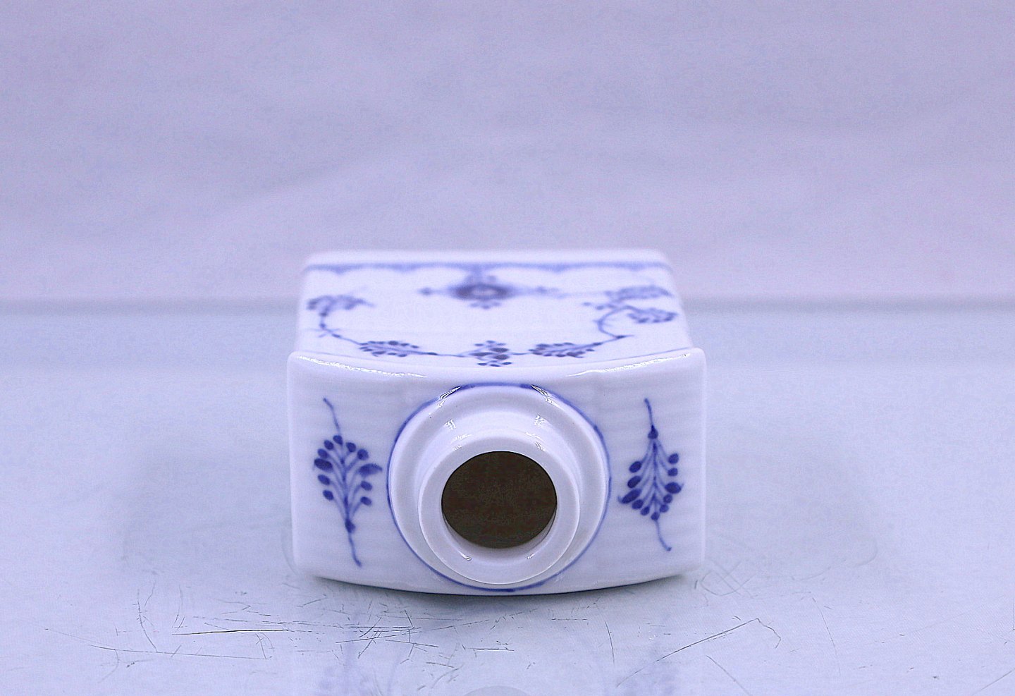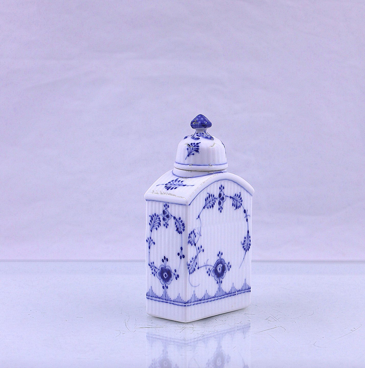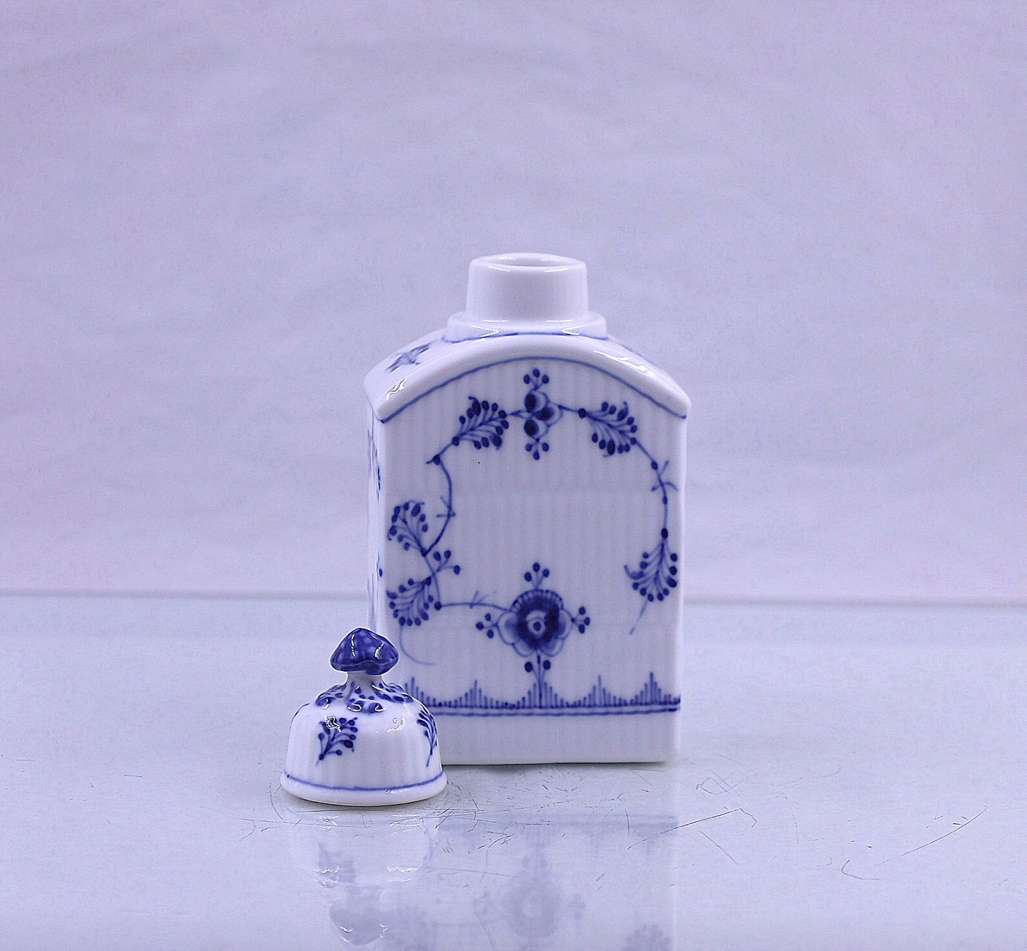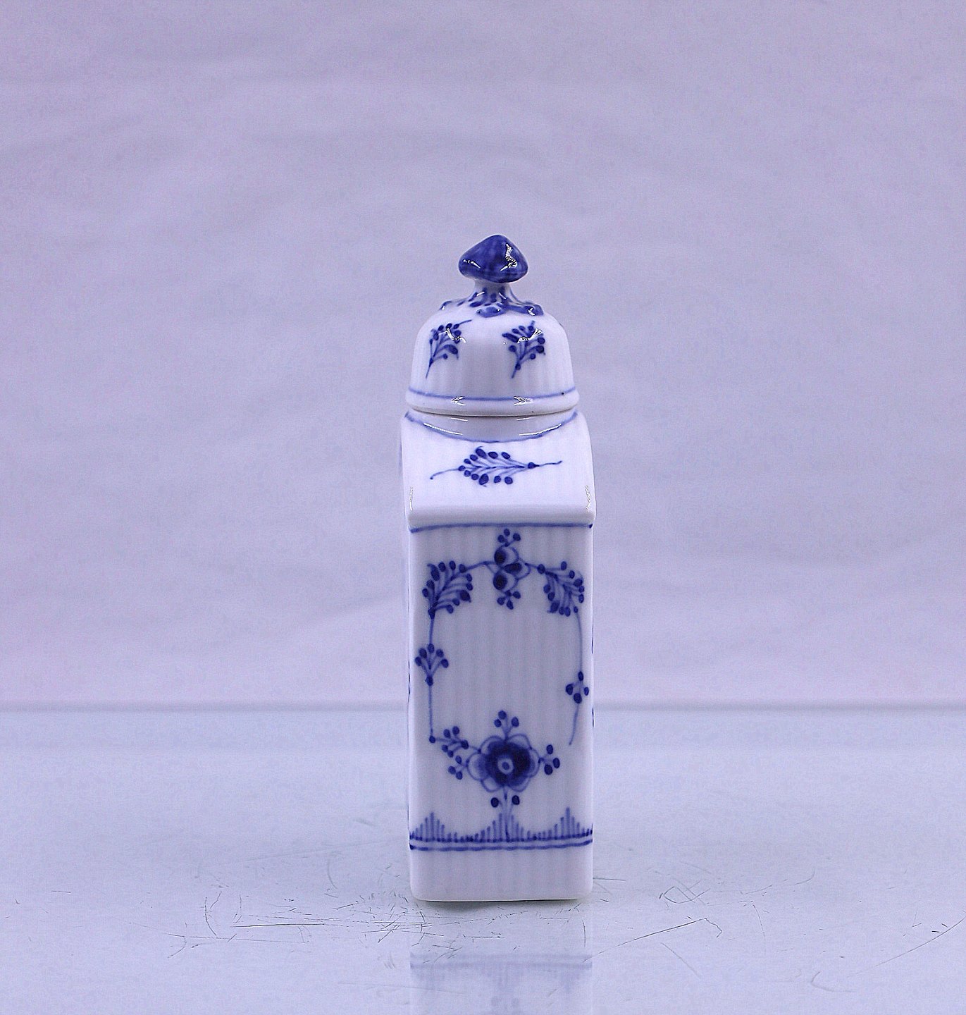 Royal Copenhagen. Musselmalet riflet te dåse, hr. 1/261. Te dåsen er med porcelæns prop, blev også lavet med korkprop og sølv montering.