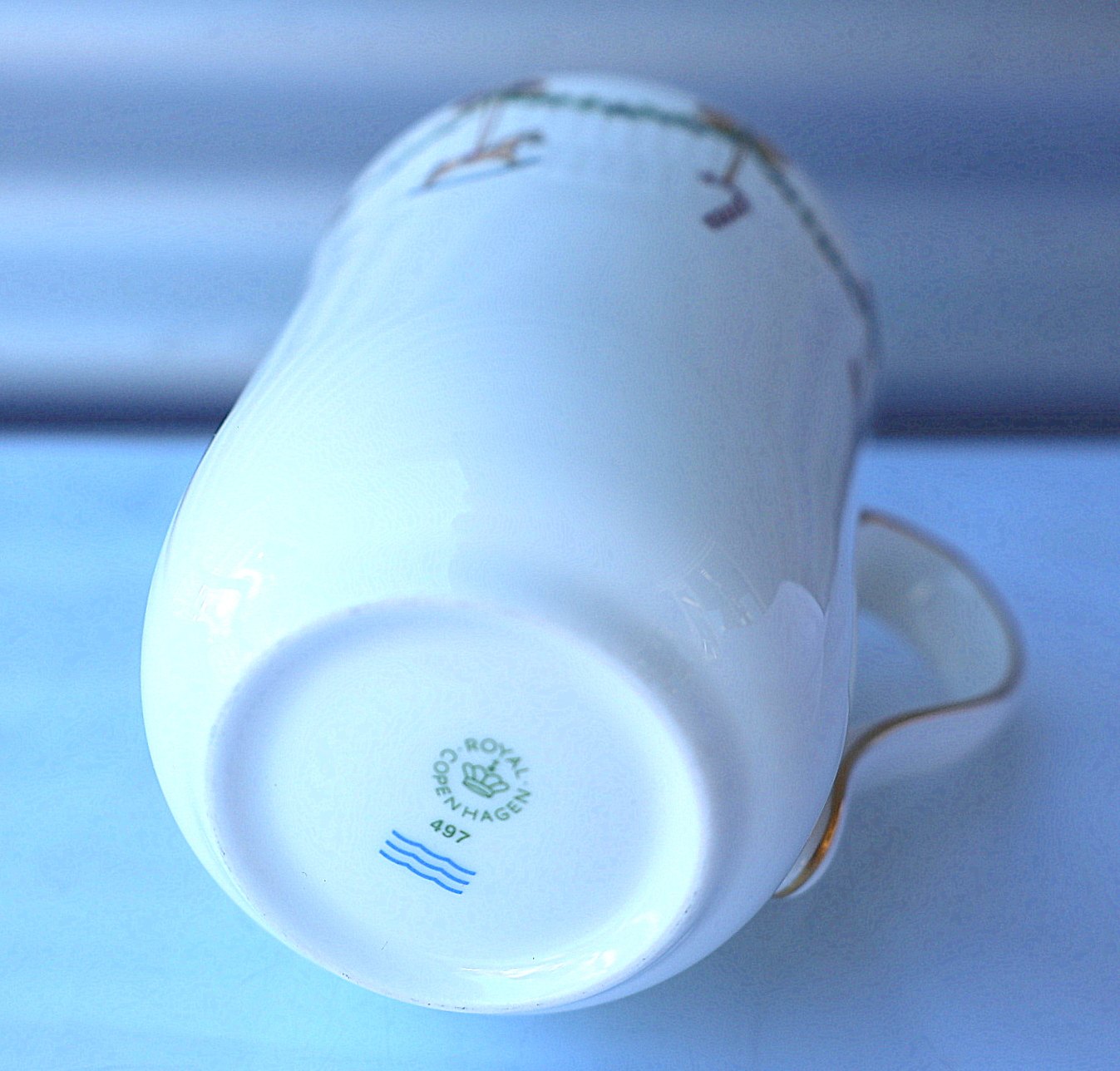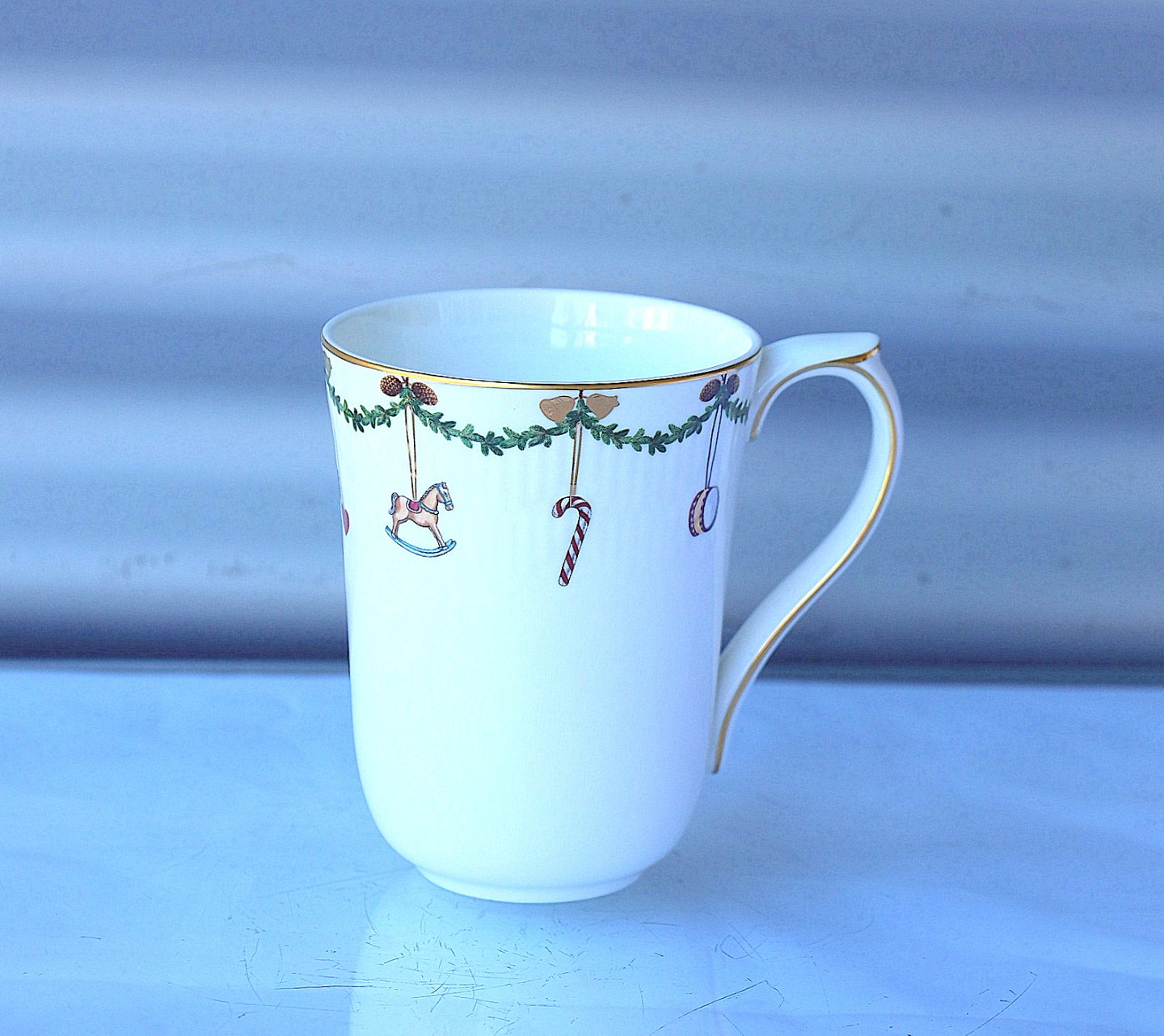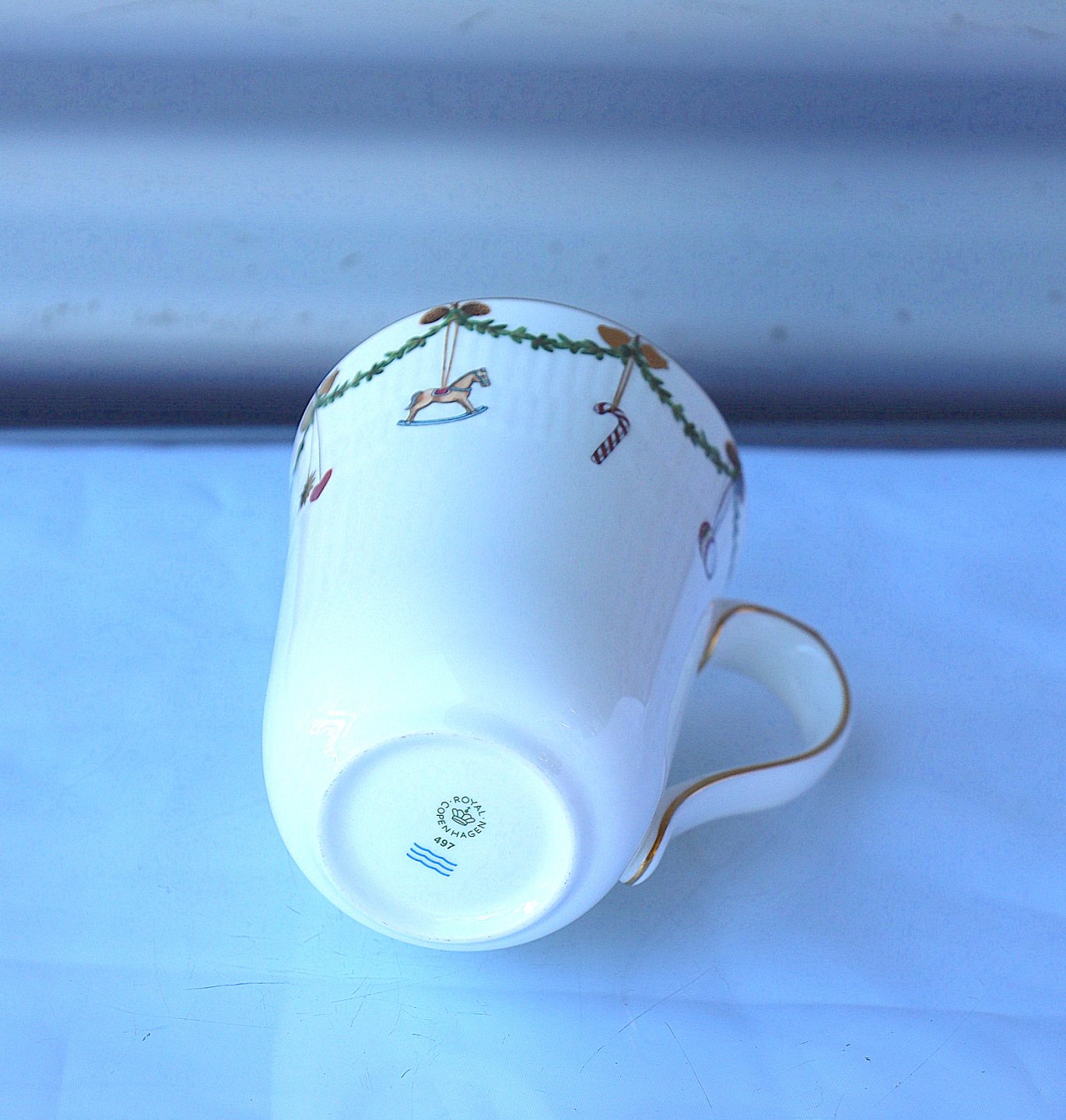 Royal Copenhagen. Stjerneriflet julekrus nr. 497. Julekrusene hører4 til det kongelige stel "Chrismas Joy Julestel". Krusene er af "Bone china" og kan indeholde 33cl.