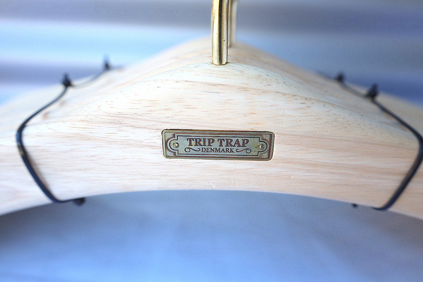 Trip Trap, Denmark. Trip Trap/Skagerak. 9 stk. bøjler, med messing krog, og af hevatræ (Gummitræ), bøjlerne har en naturlig form af hevatræ. Bøjlen er elegant, smuk og strømlinet.