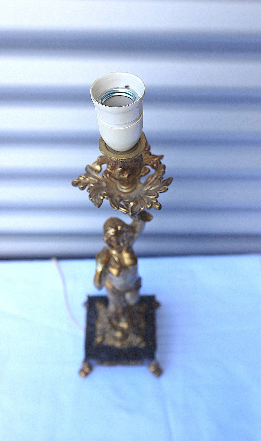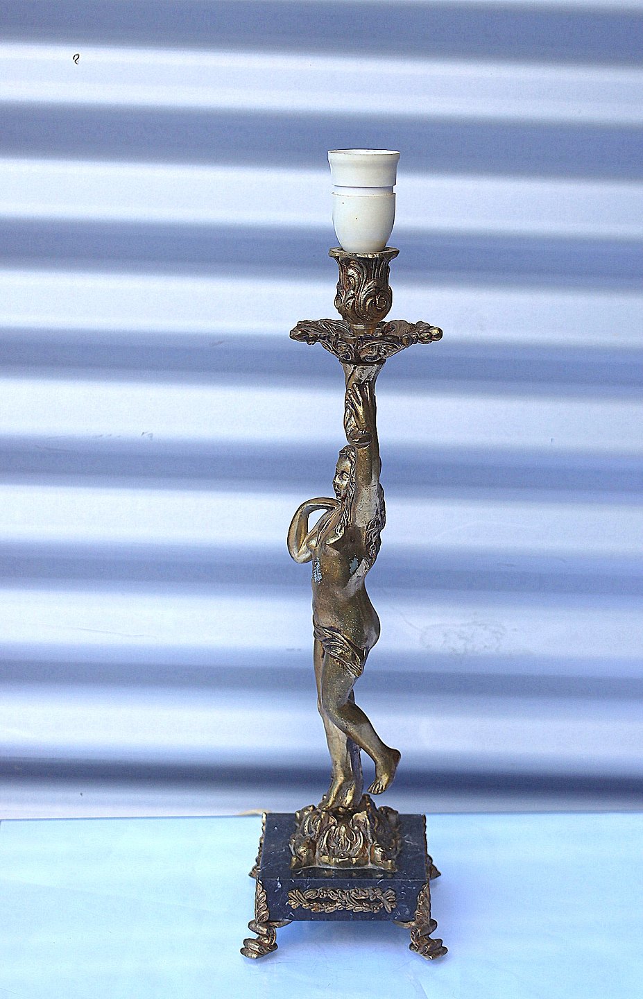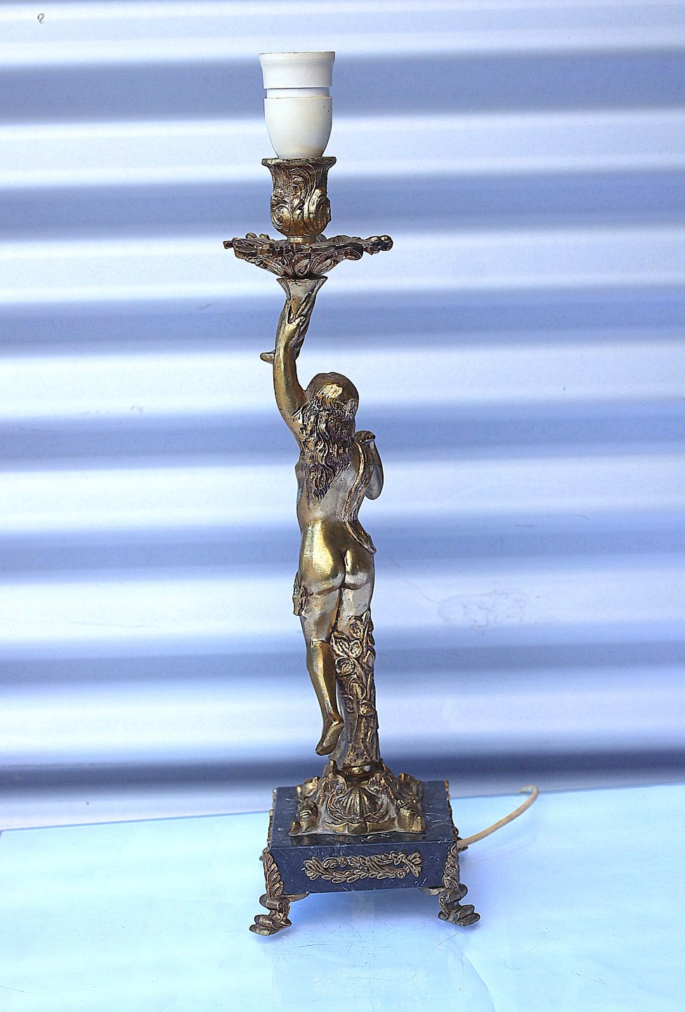 Bordlampe. Eksotisk figur, bordlampe af messing og sort marmor. Nøgen, messing, dame med lændeklæde. Foden er af italiensk marmor, med forgyldt bronze montering.