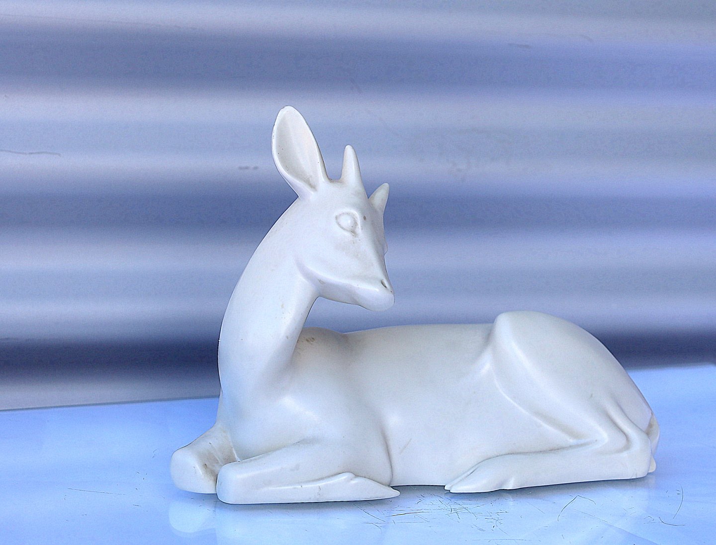 Bing & Grøndahl. Liggende hjort, nr. 2205. Figuren er udført i porcelæn med mat glasur.