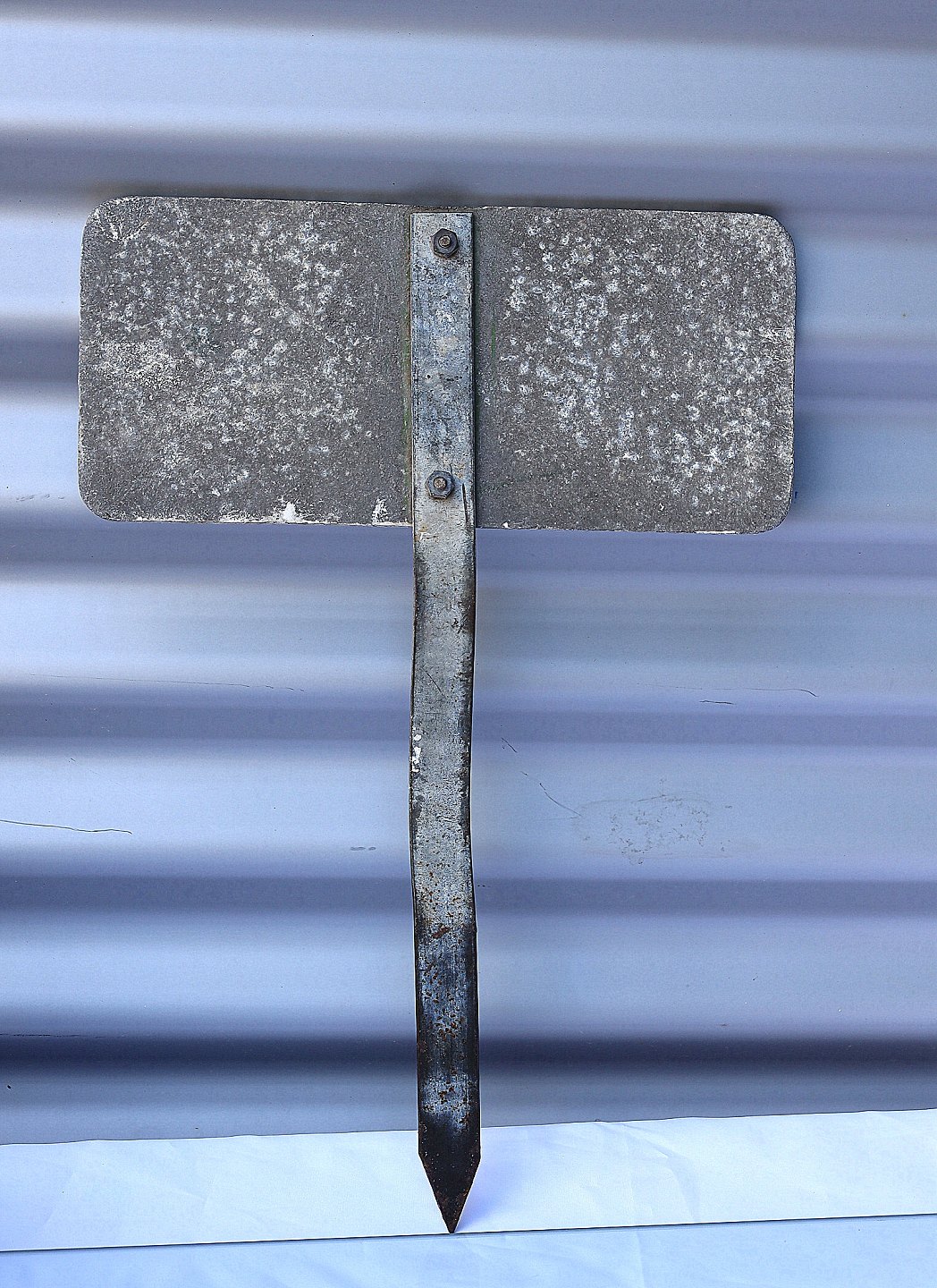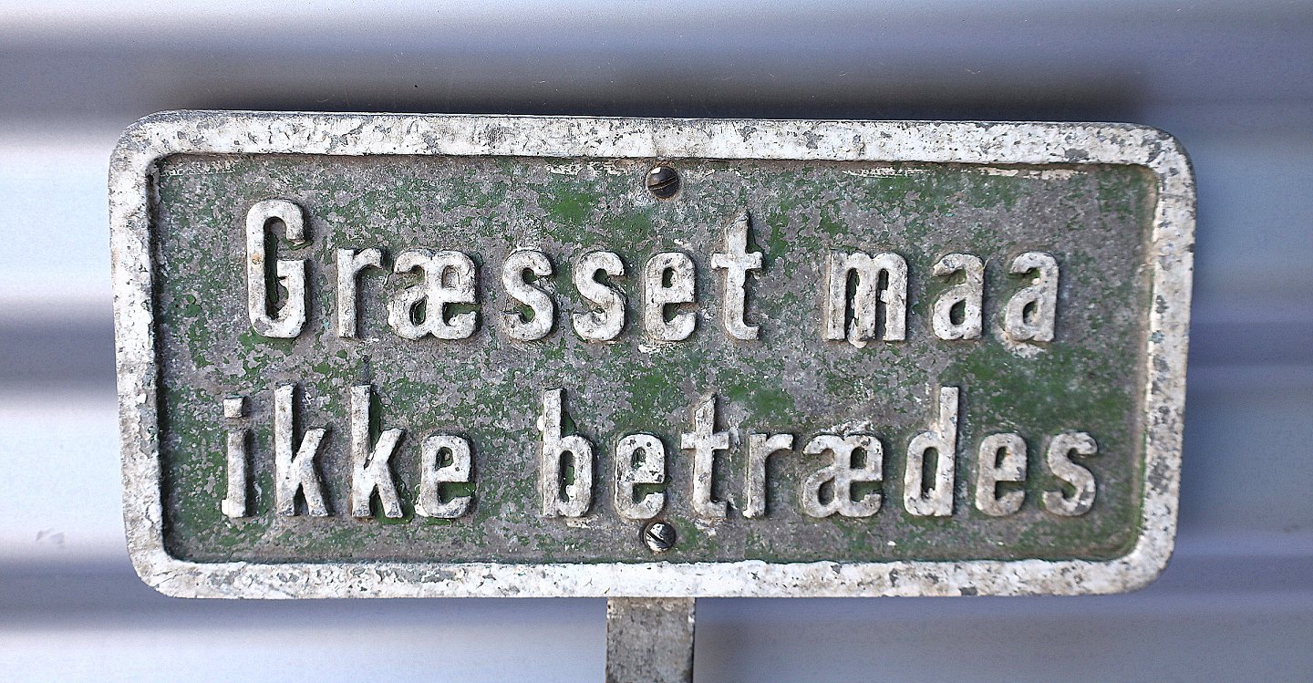 Metal skilt. "Græsset maa ikke betrædes" skiltet er beregnet til at sætte i græsplænen.