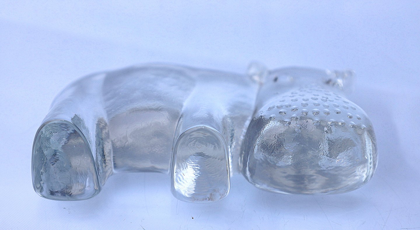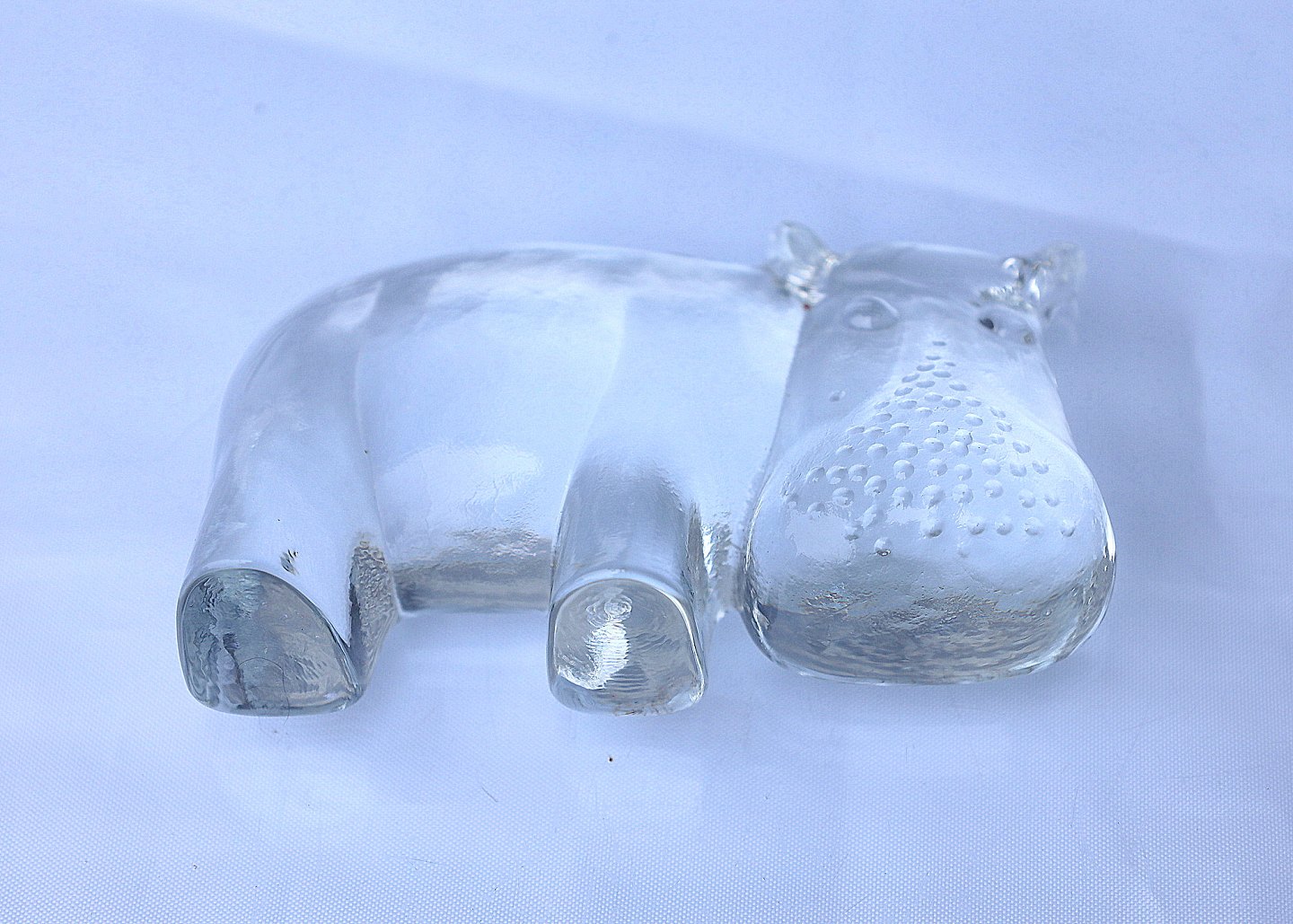 Kosta Boda. Flad flodhest, beregnet til at stå. Flodhesten hører til Kosta Bodas Zoo serie.