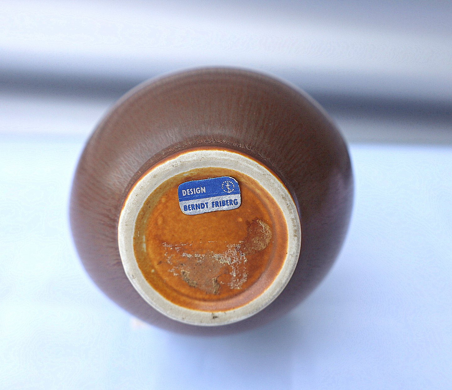 Gustavsberg, Sweden. Berndt Friberg, keramik vase med ensfarvet harepelsglasur. Vase er brun let oval i facon, med høj hals.