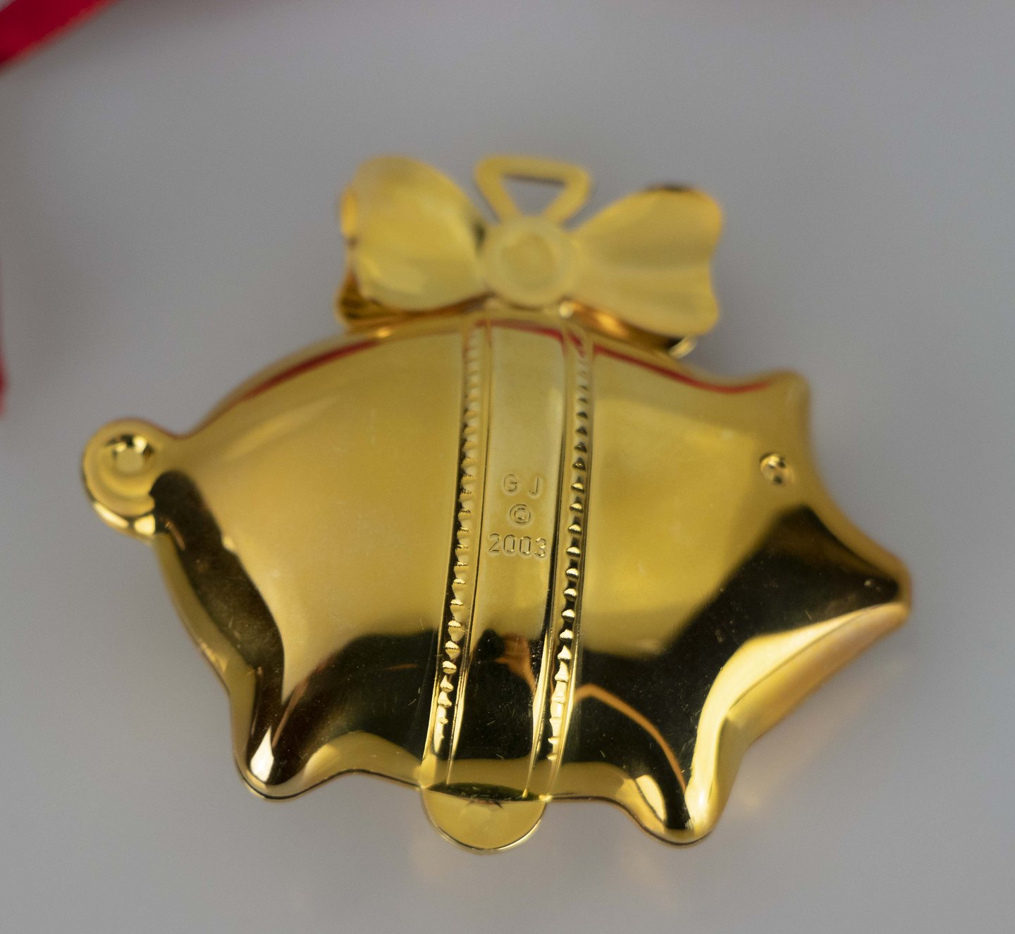 Julegris i forgyldt messing fra Golden Christmas serien. Mærket GJ 2003.