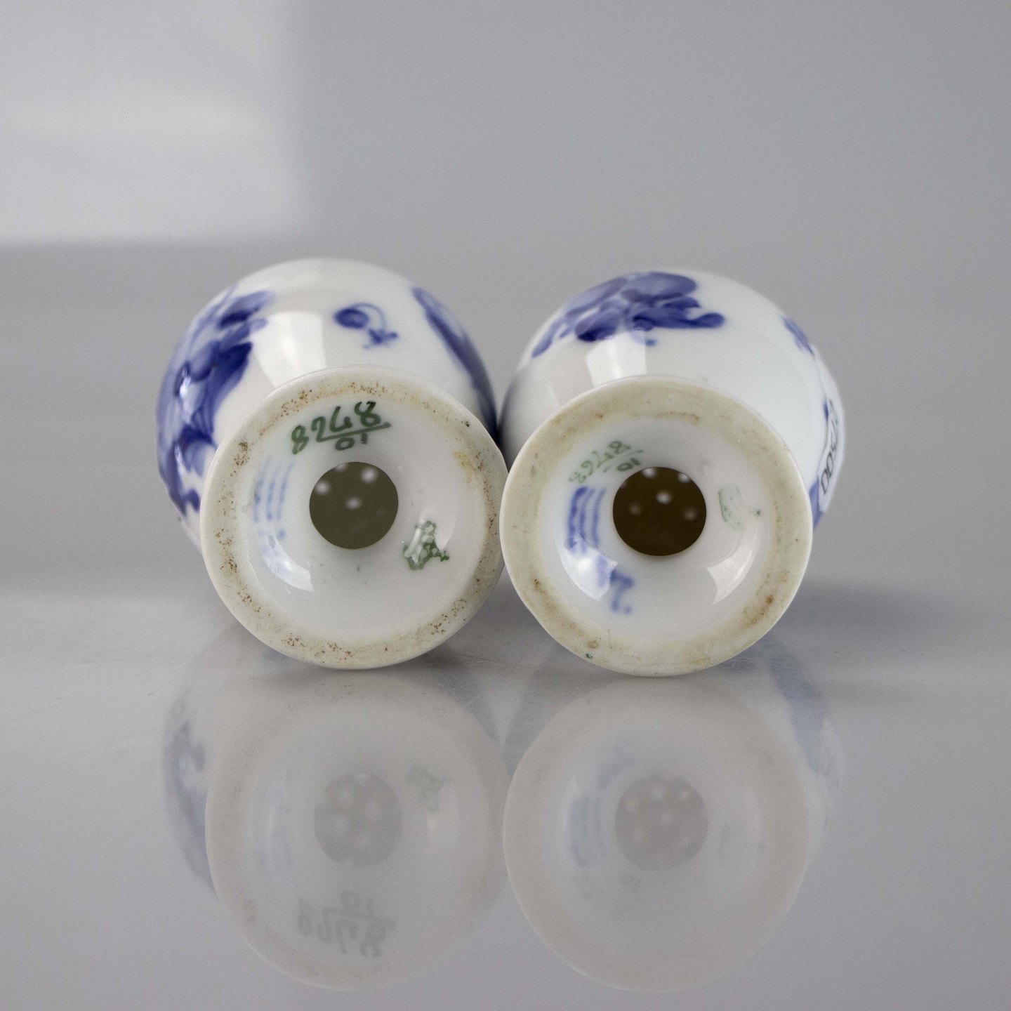Salt- og peberbøsse fra stellet Blå blomst flettet nr. 10/8763 og 10/8768