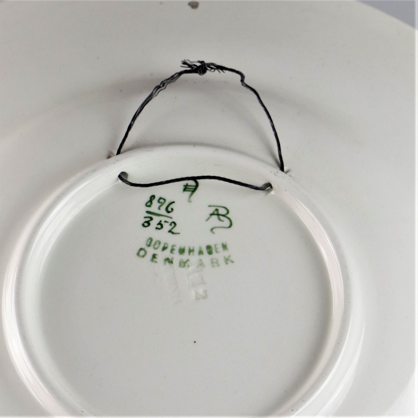 Aluminia platte dekoreret med løvkrans og stor blomst.