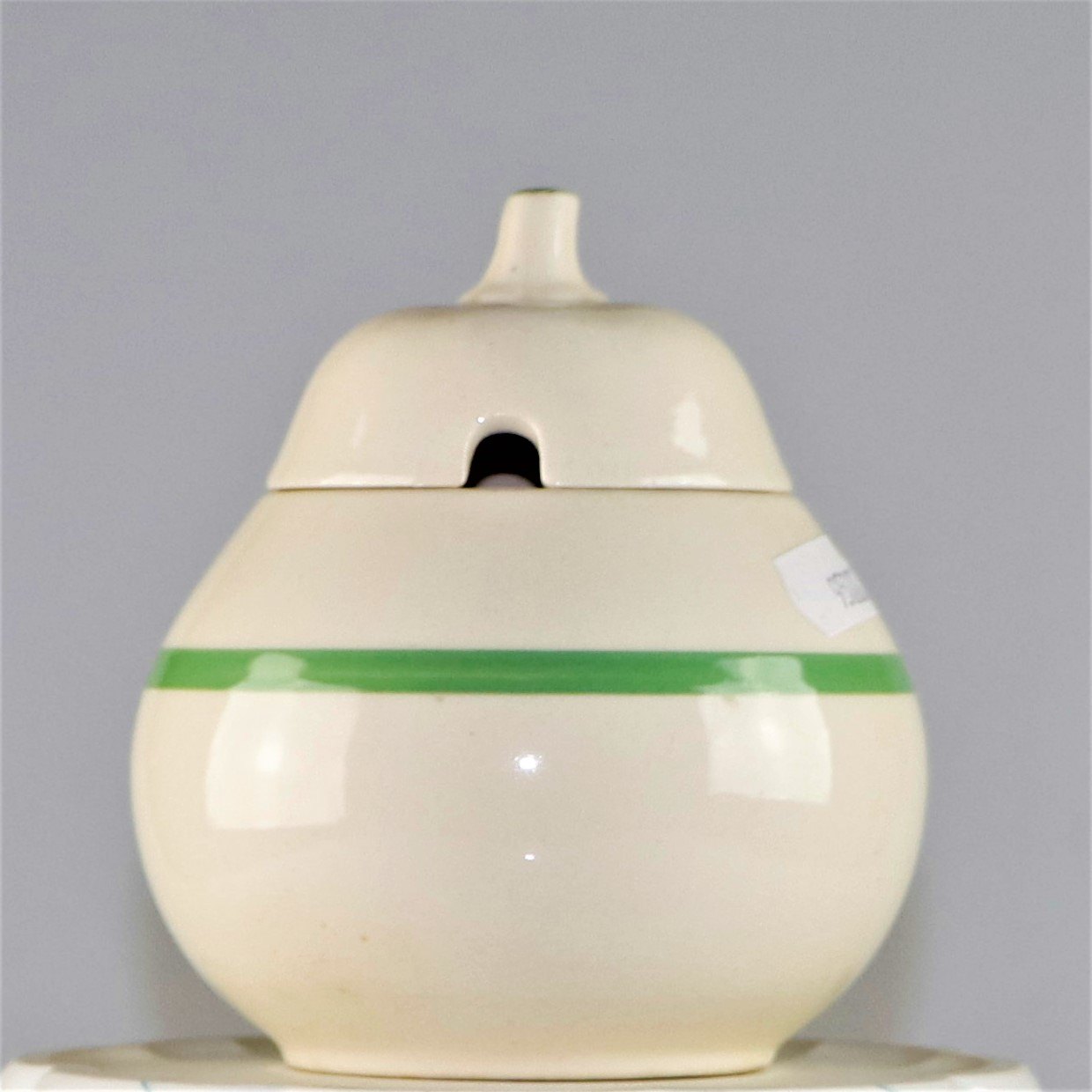 Skål med låg, råhvid, pæreformet, lågskål, lågkrukke