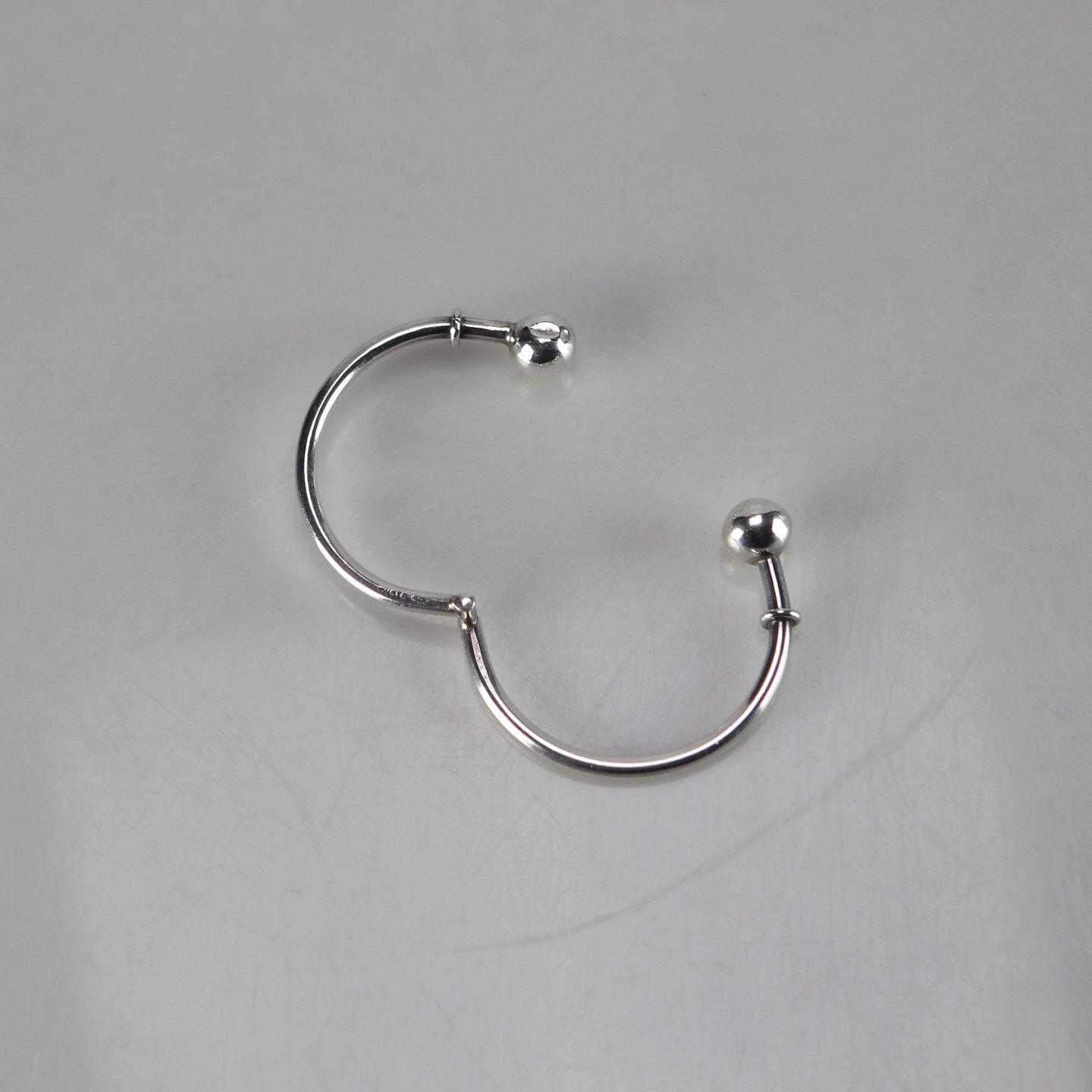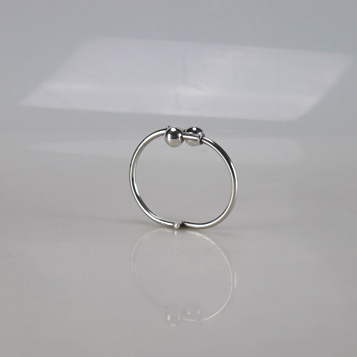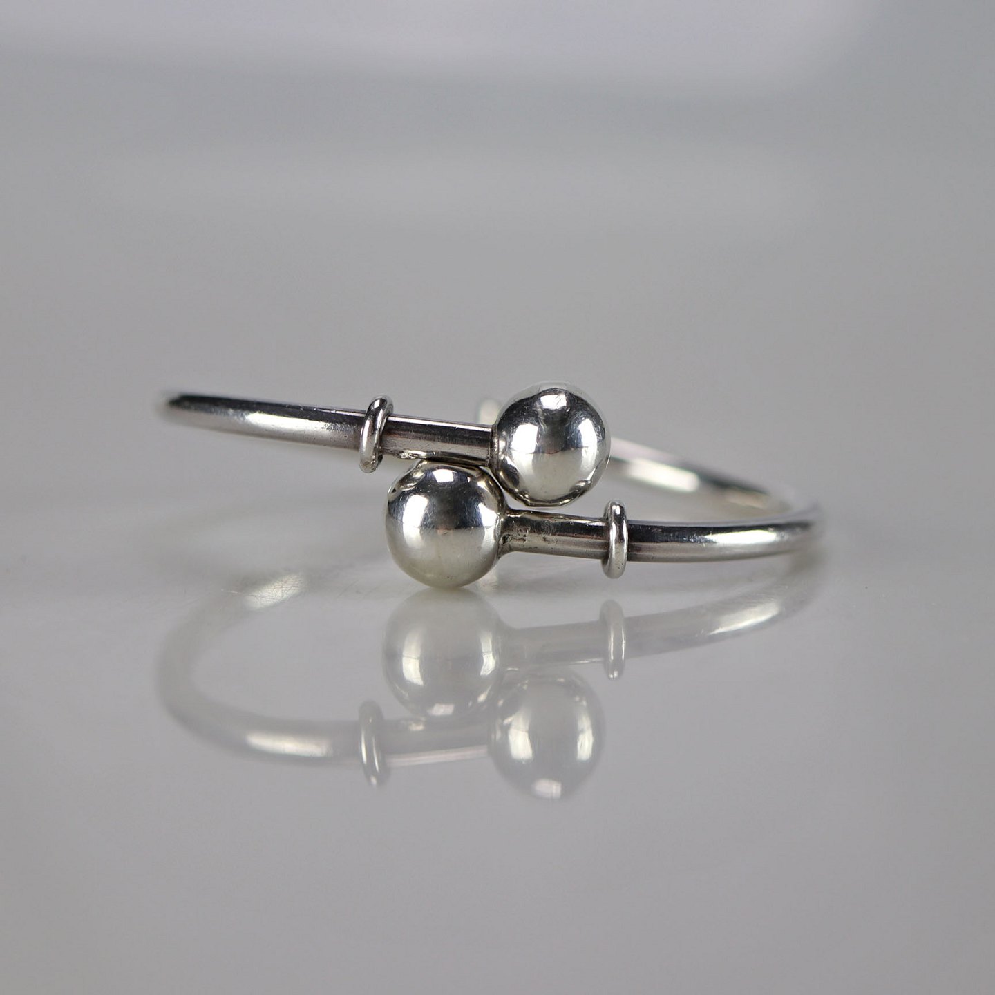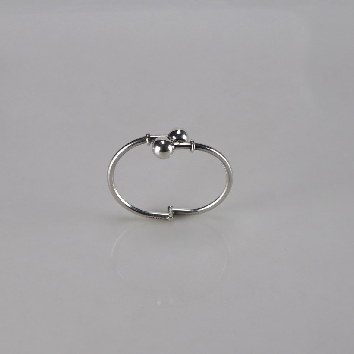 Smukt armbånd i sølv med kugler som dekoration. Armbåndet kan åbnes så det lettere kan tages på.