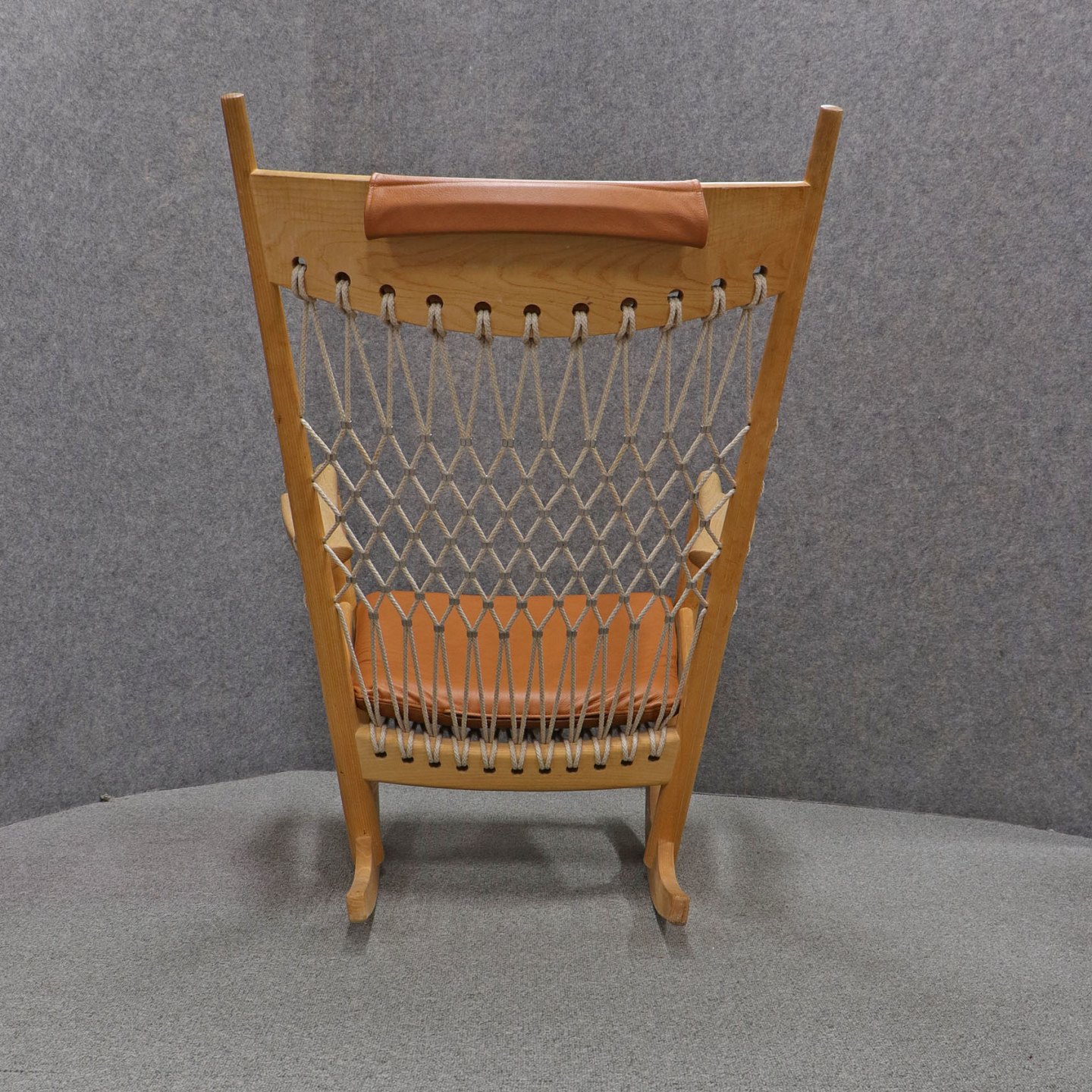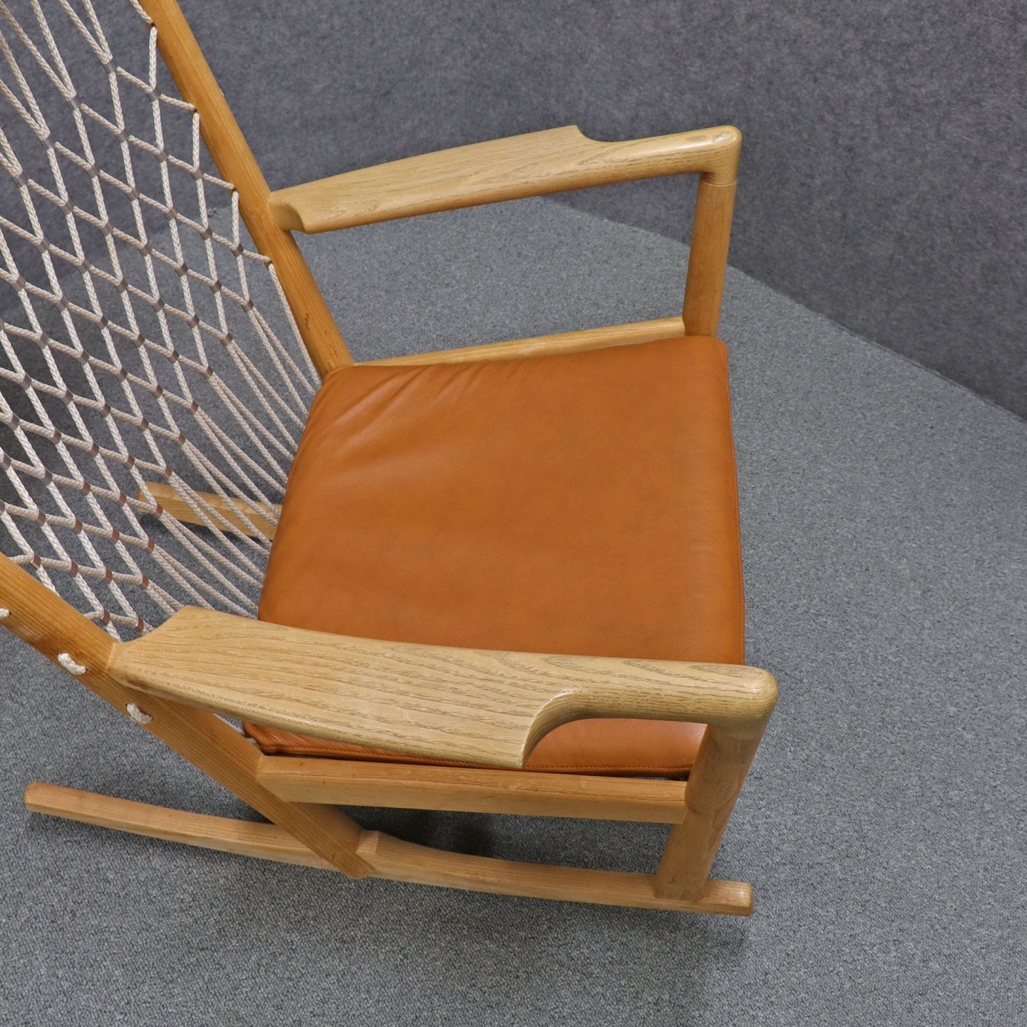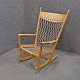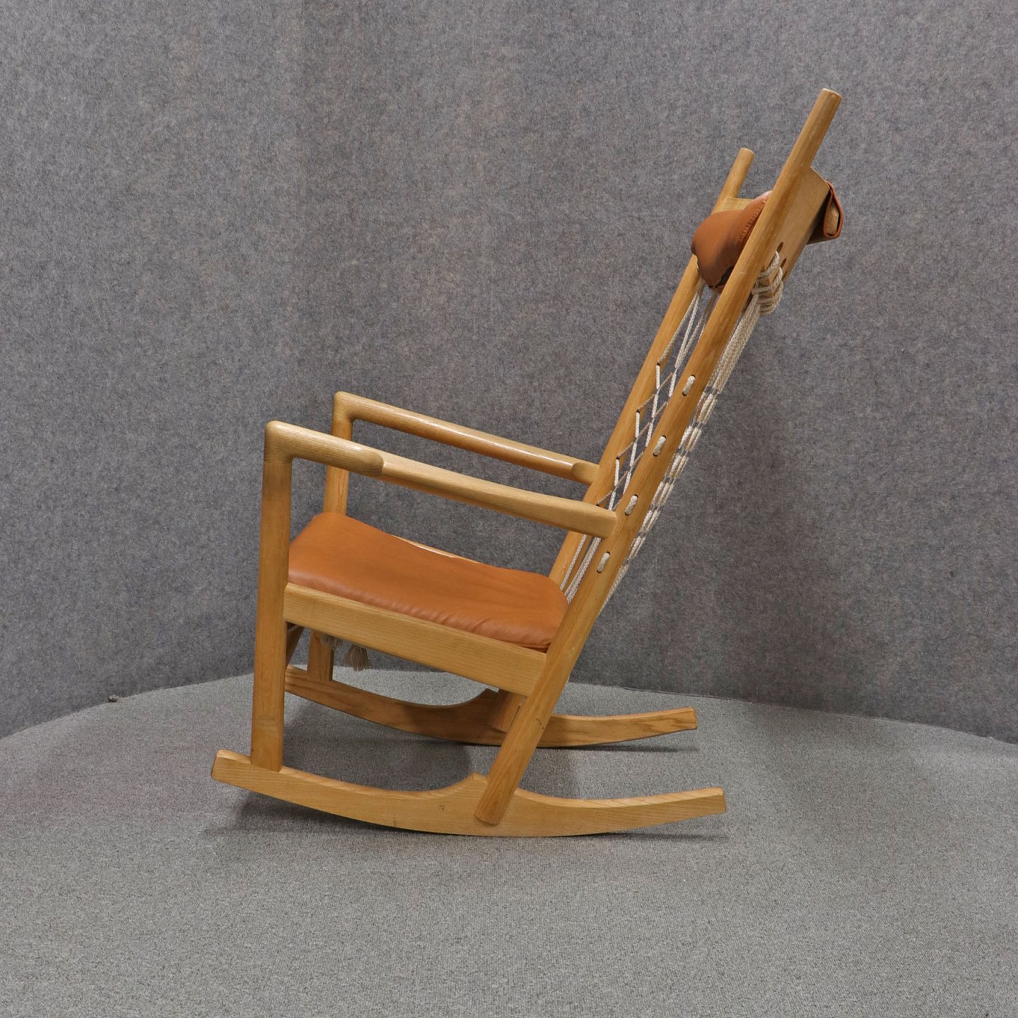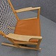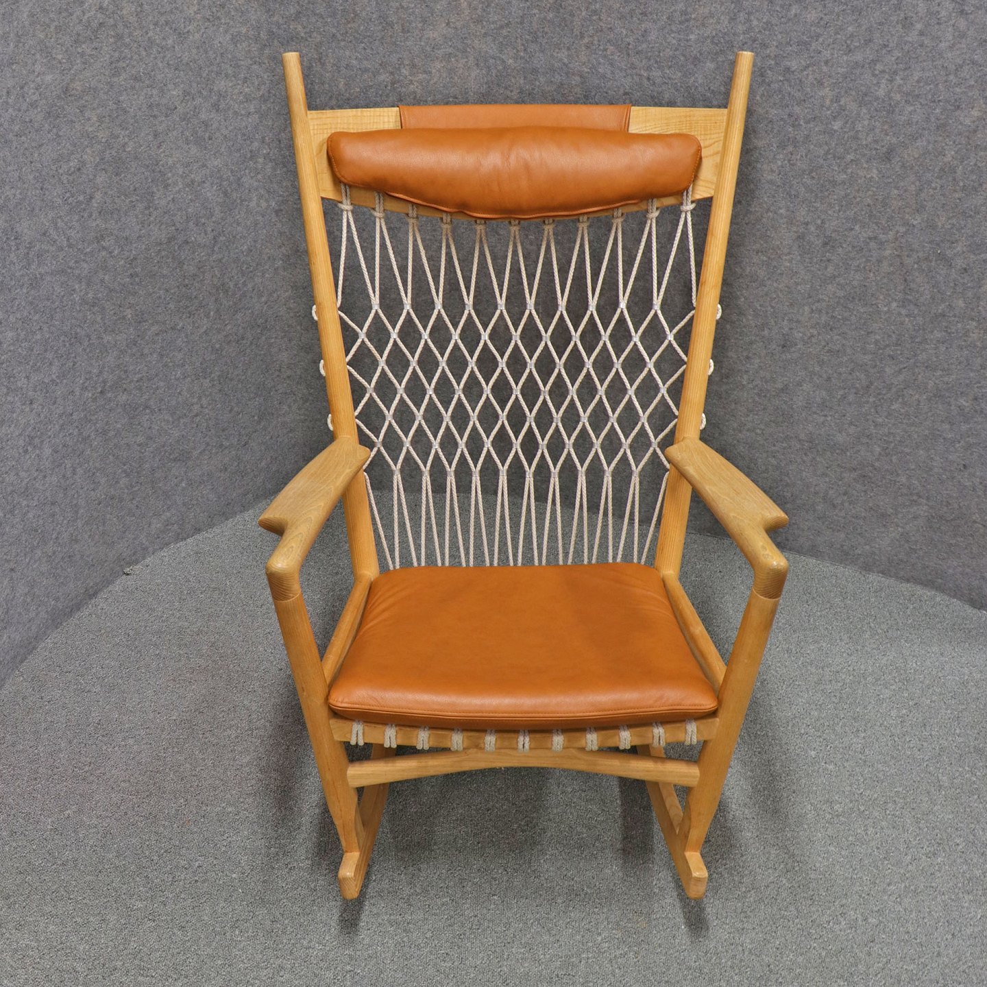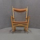 Lakeret eg. Sæde og nakkepude betrukket med nypolstret cognacfarvet læder.