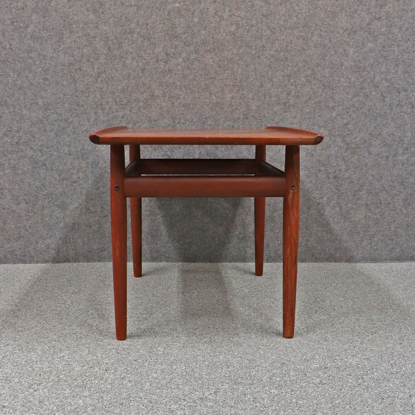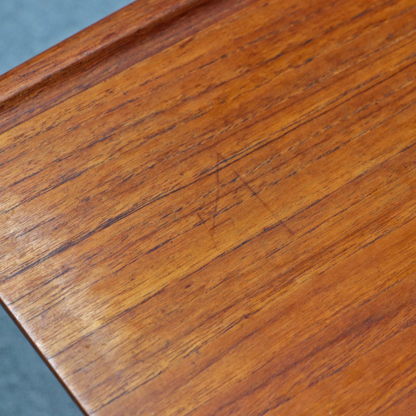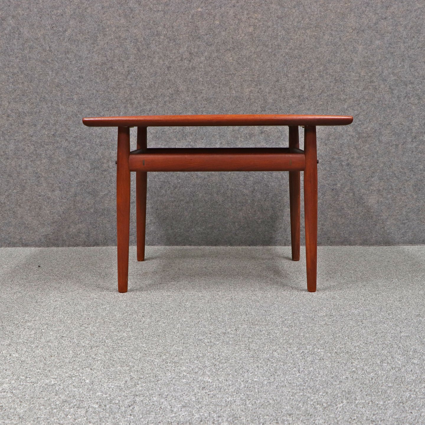 Sofabord med buet kanter i teaktræ. Rektangulær