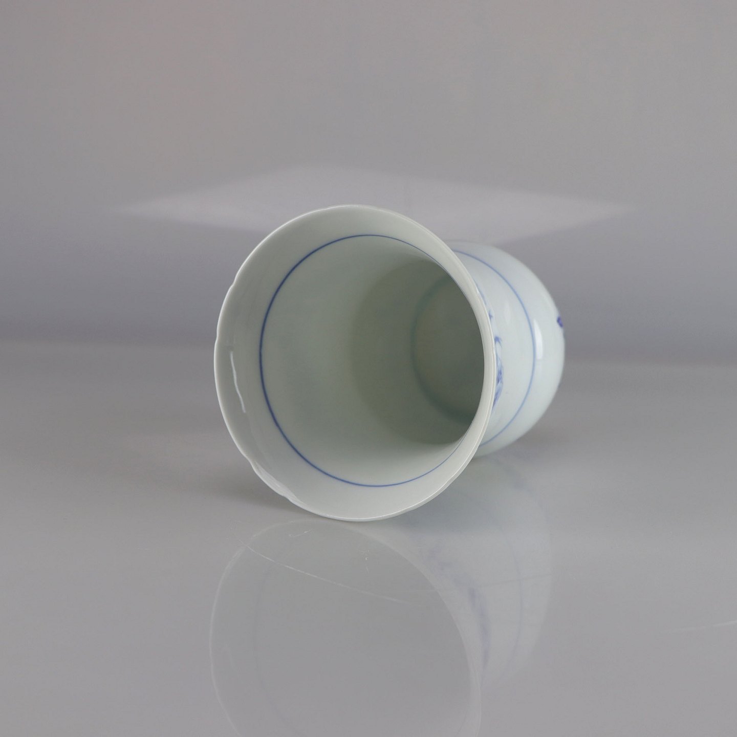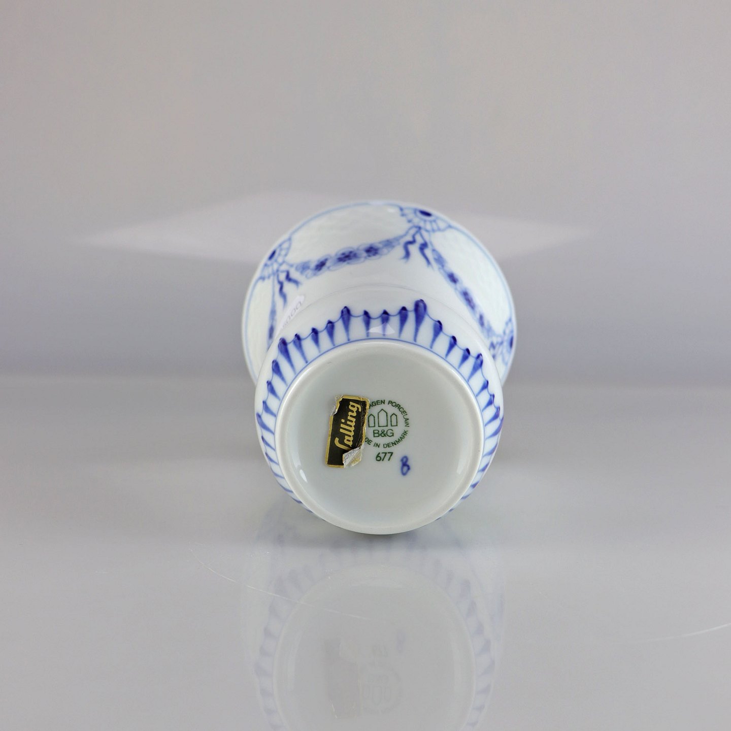 Blomstervase i hvidt porcelæn med skelform og motiv af guirlander med blå blomster