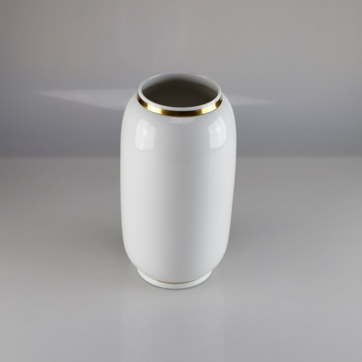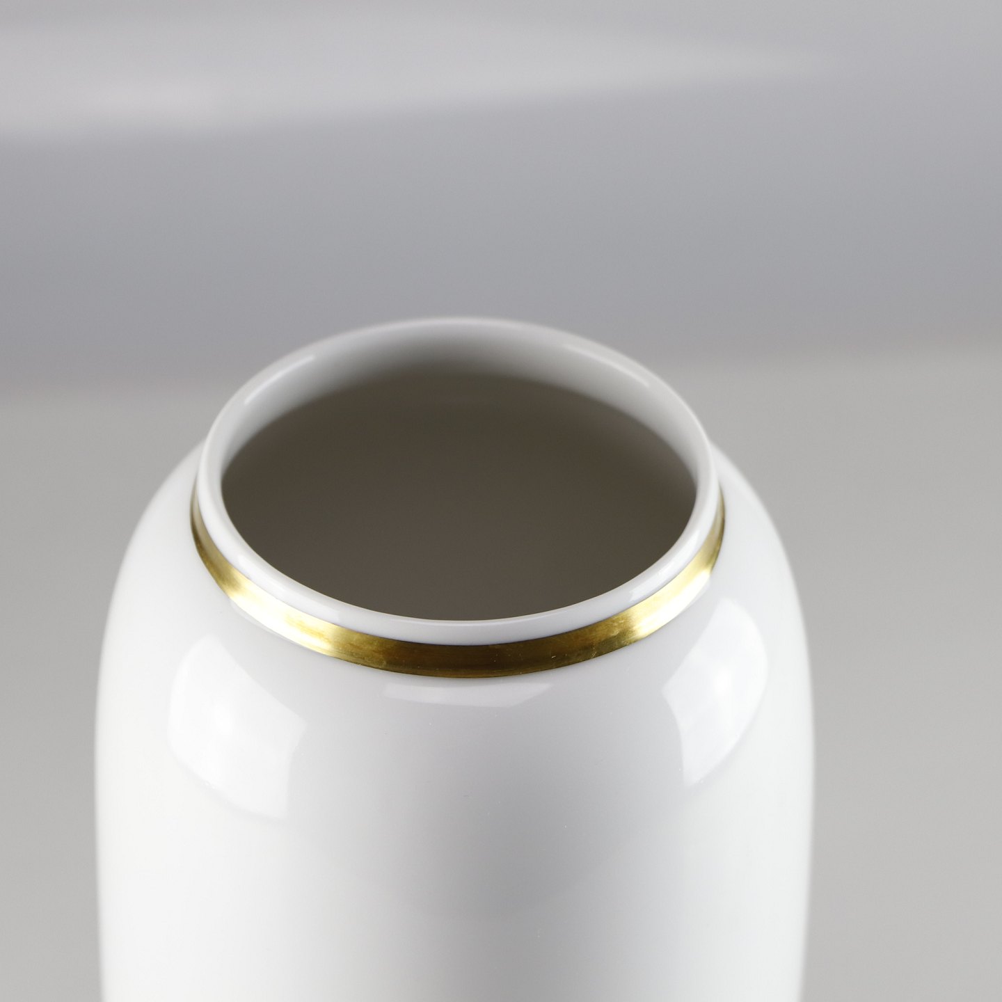 Vase i hvid med guldkant og sort motiv - Svinedrengen