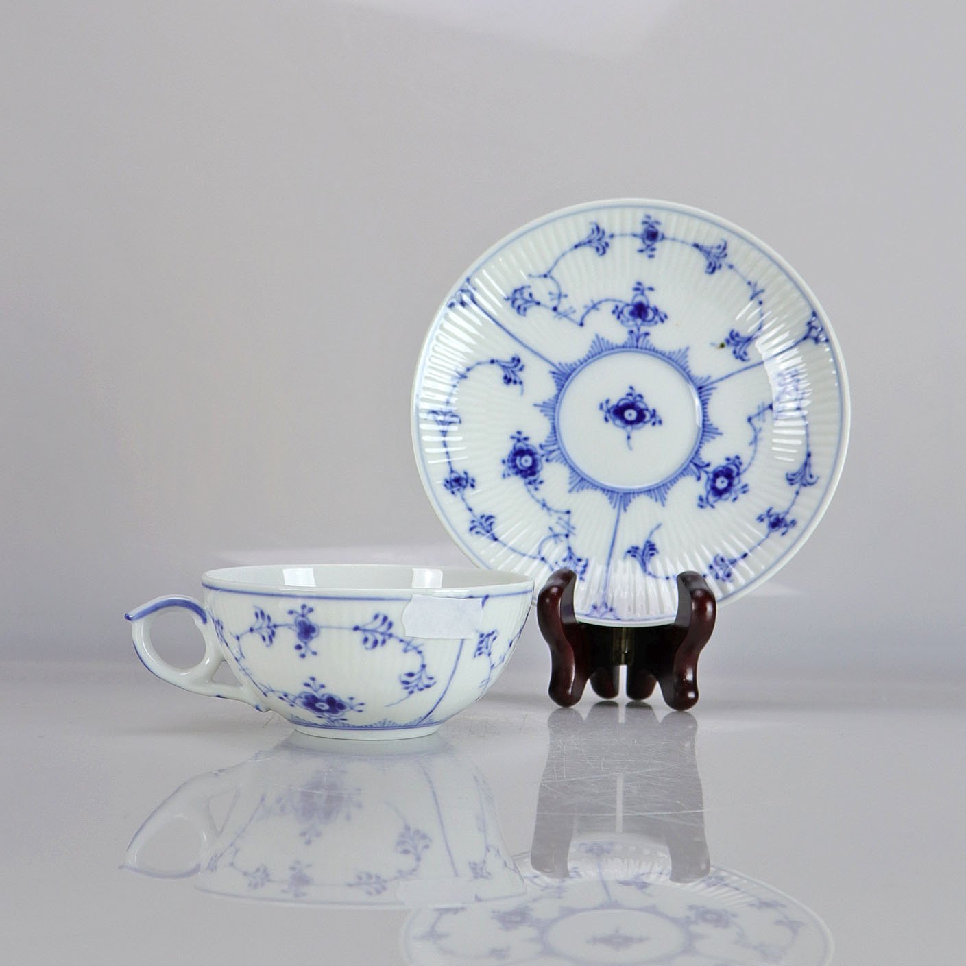 Royal Copenhagen kop med underkop Musselmalet Riflet