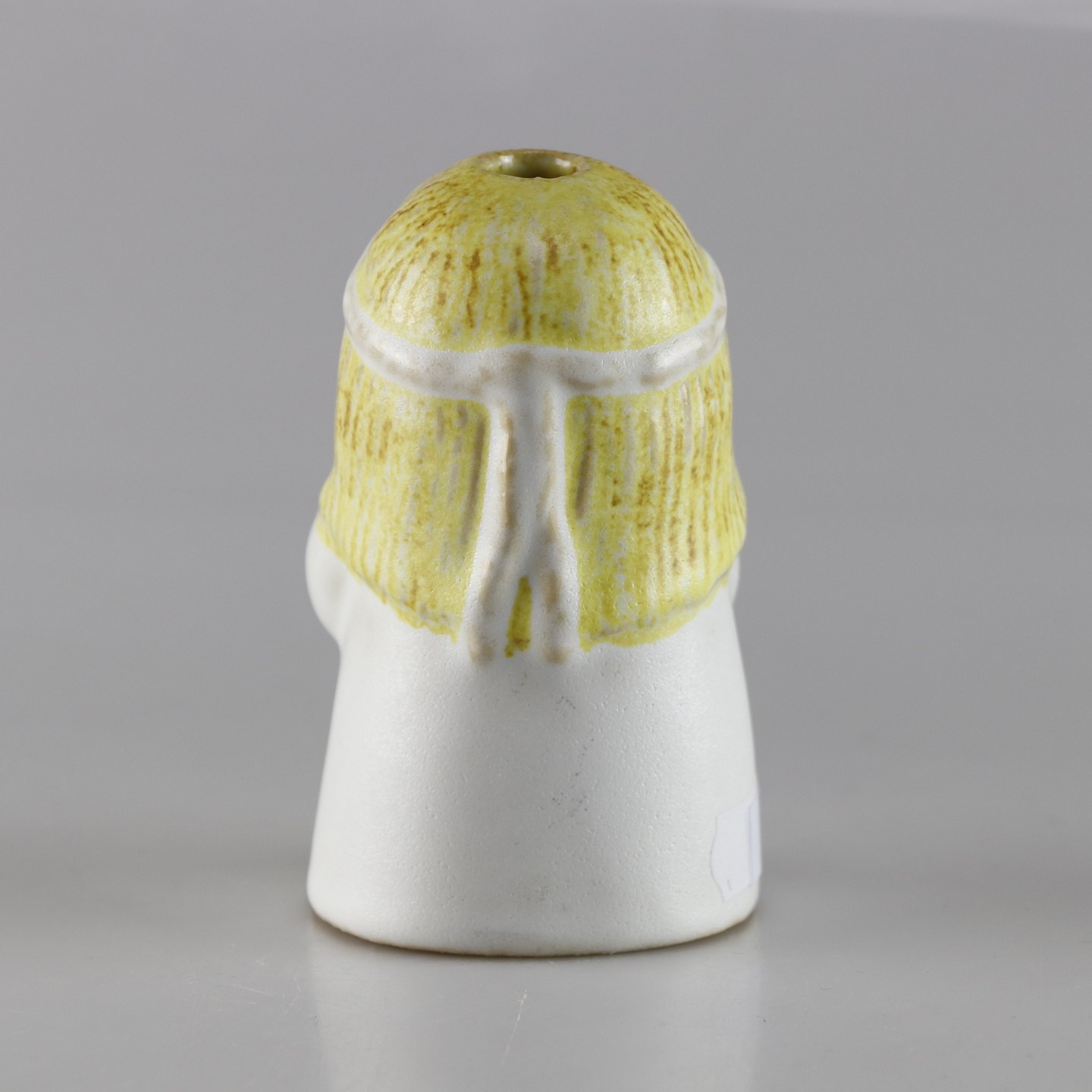 Stentøjsfigur i hvid med gult hår, med motiv af syngende adventsbarn. Luciabrud med kertestage fra adventsbørn serien.