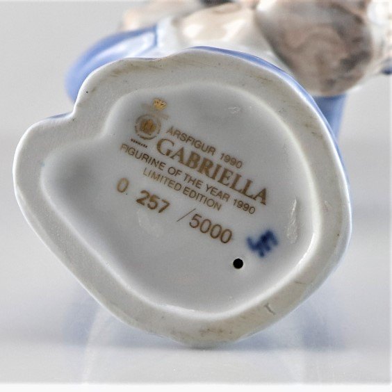 Porcelænsfigur med motiv af pige med fyldt kurv af druer.