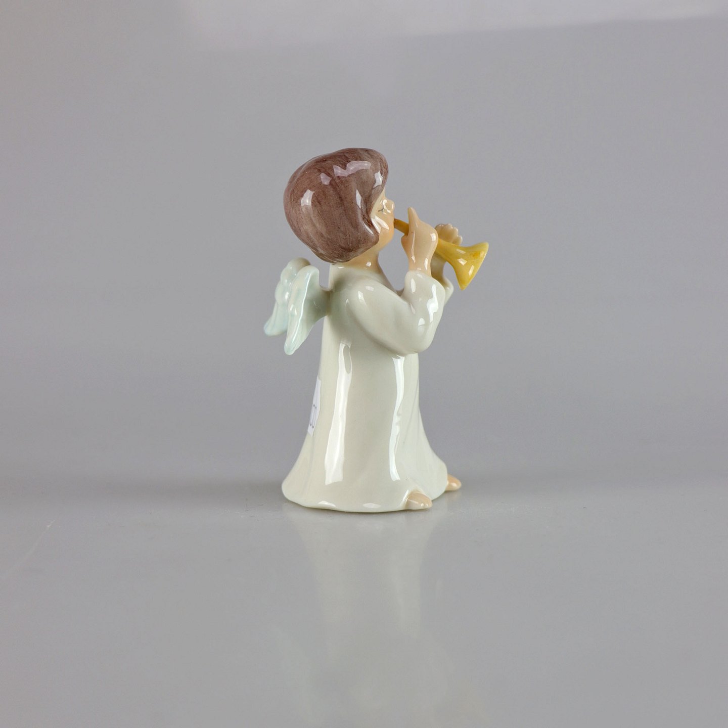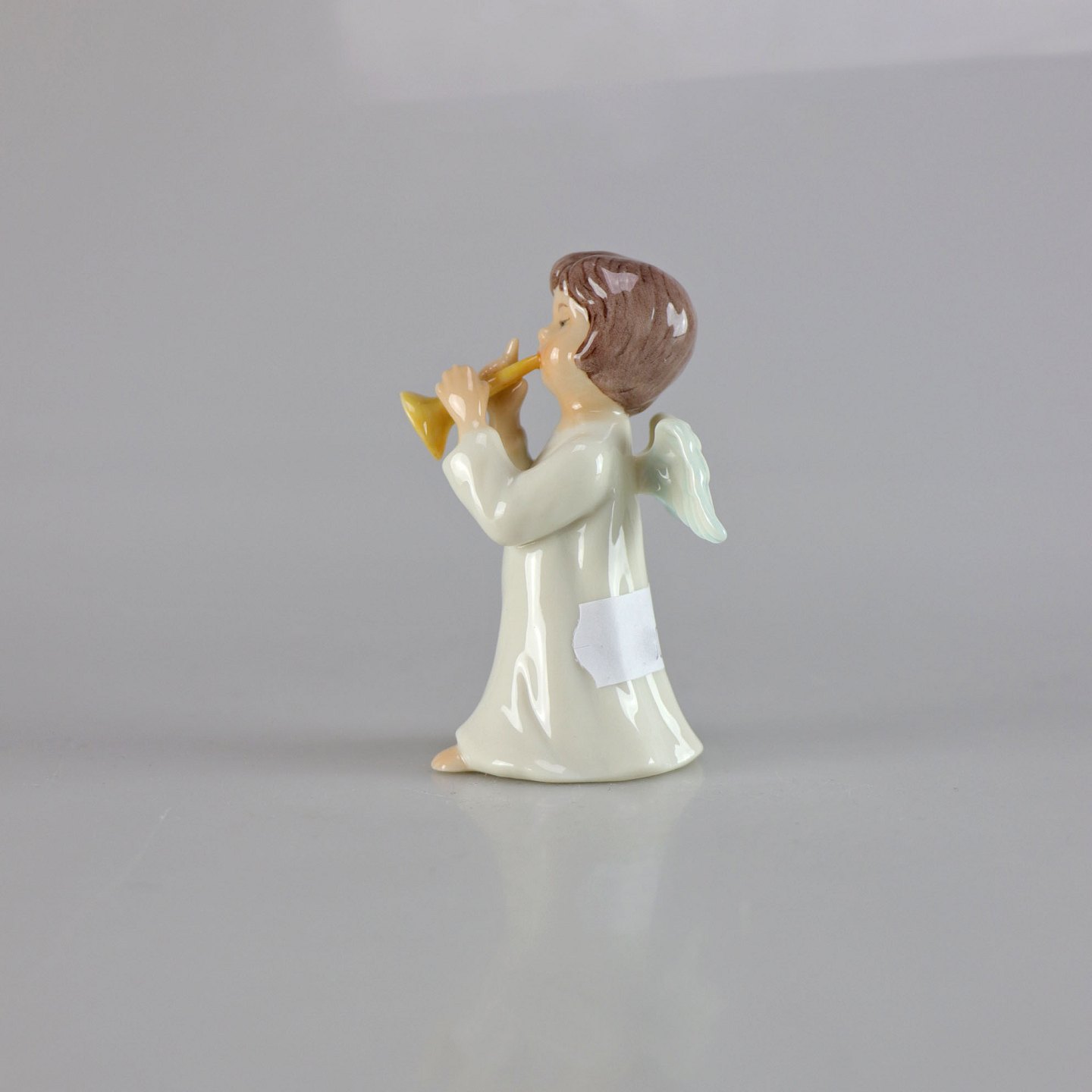 Lille porcelænsfigur med motiv af engel som spiller på trompet